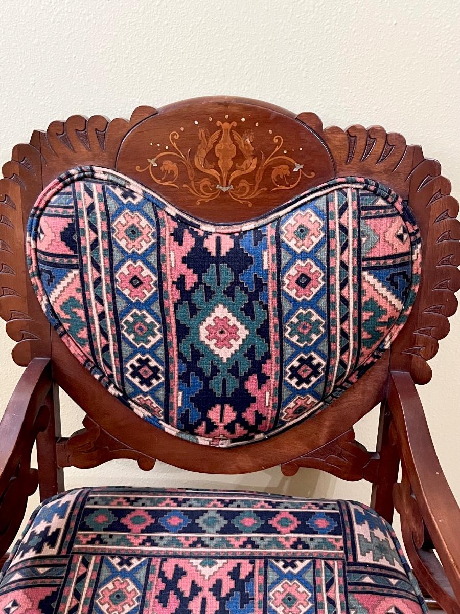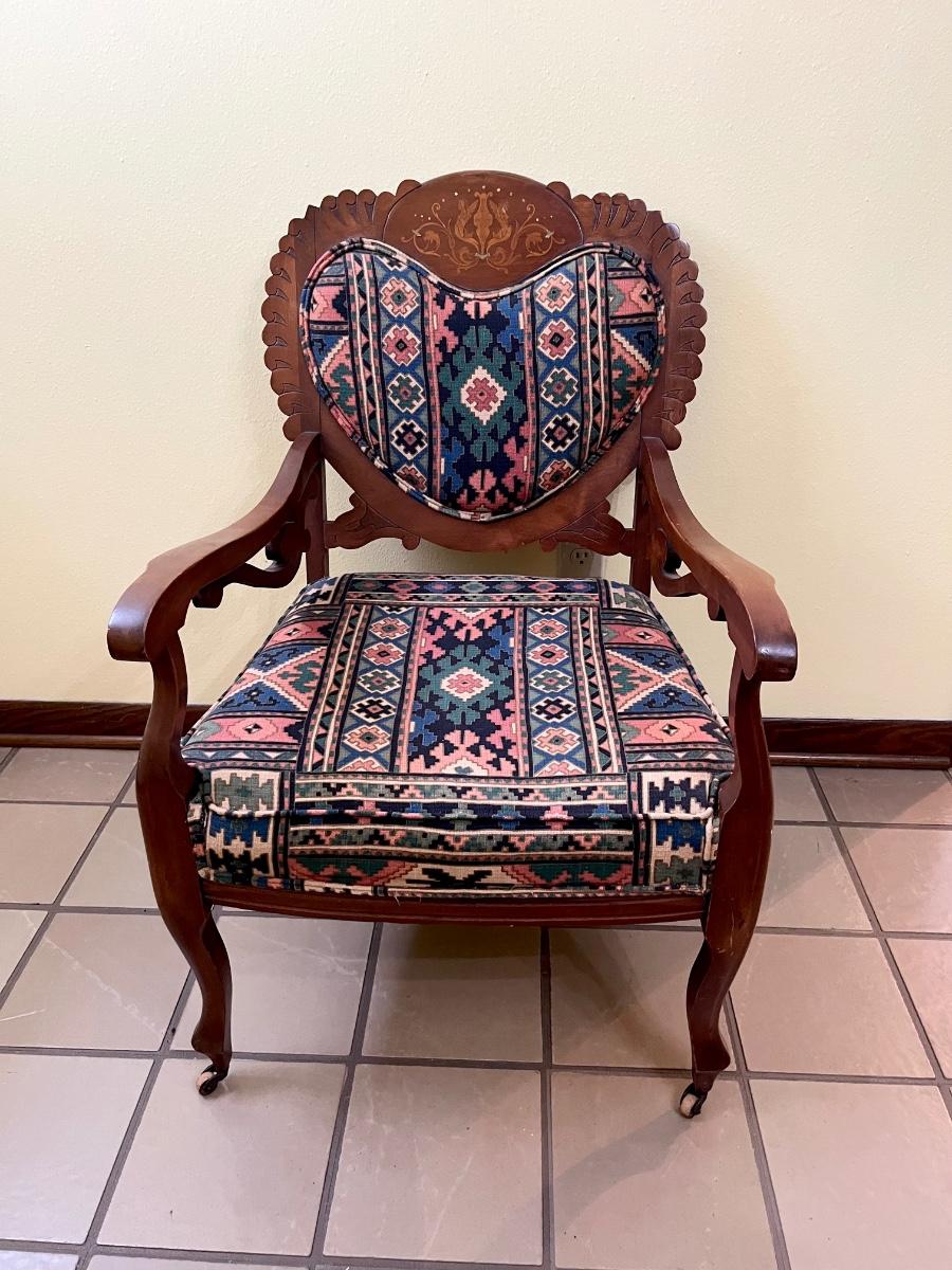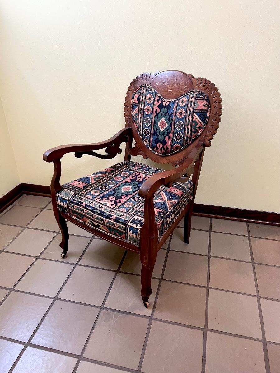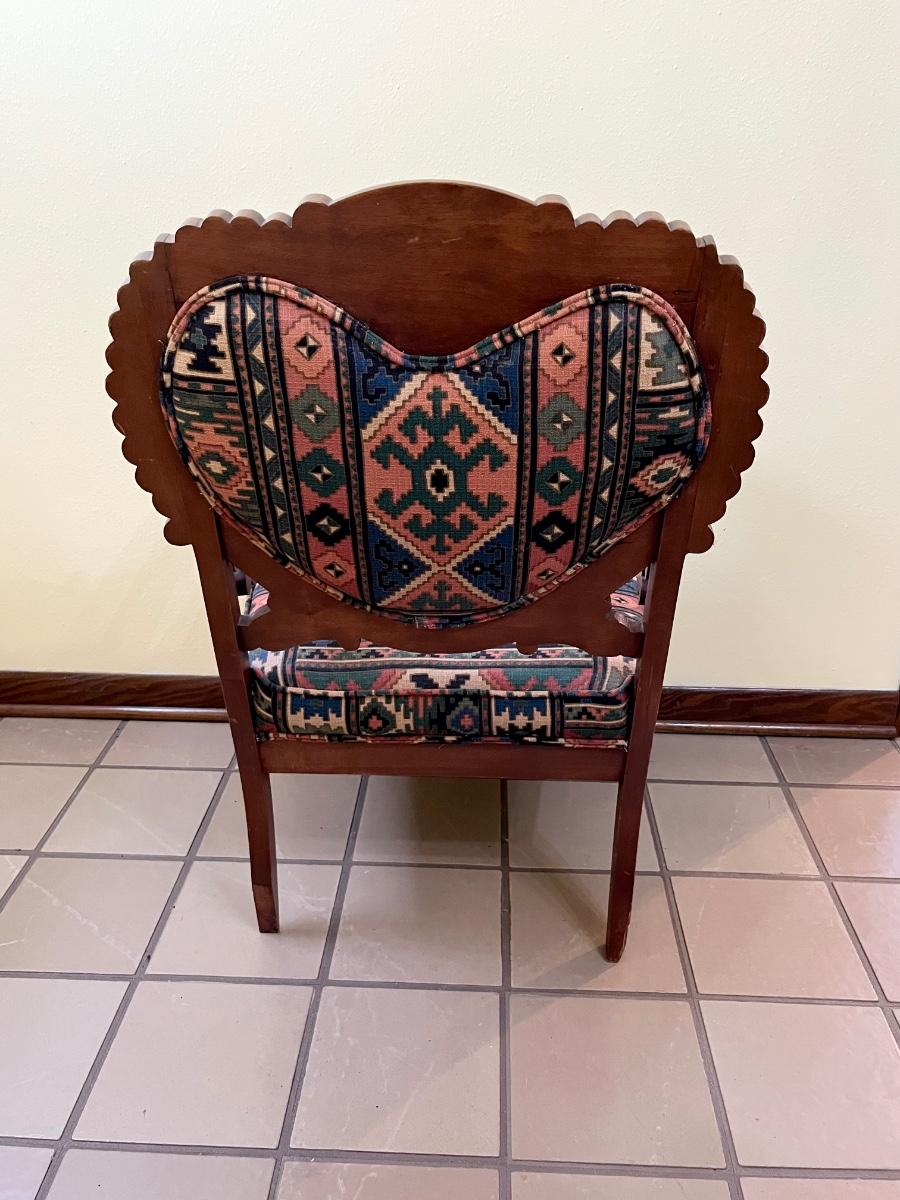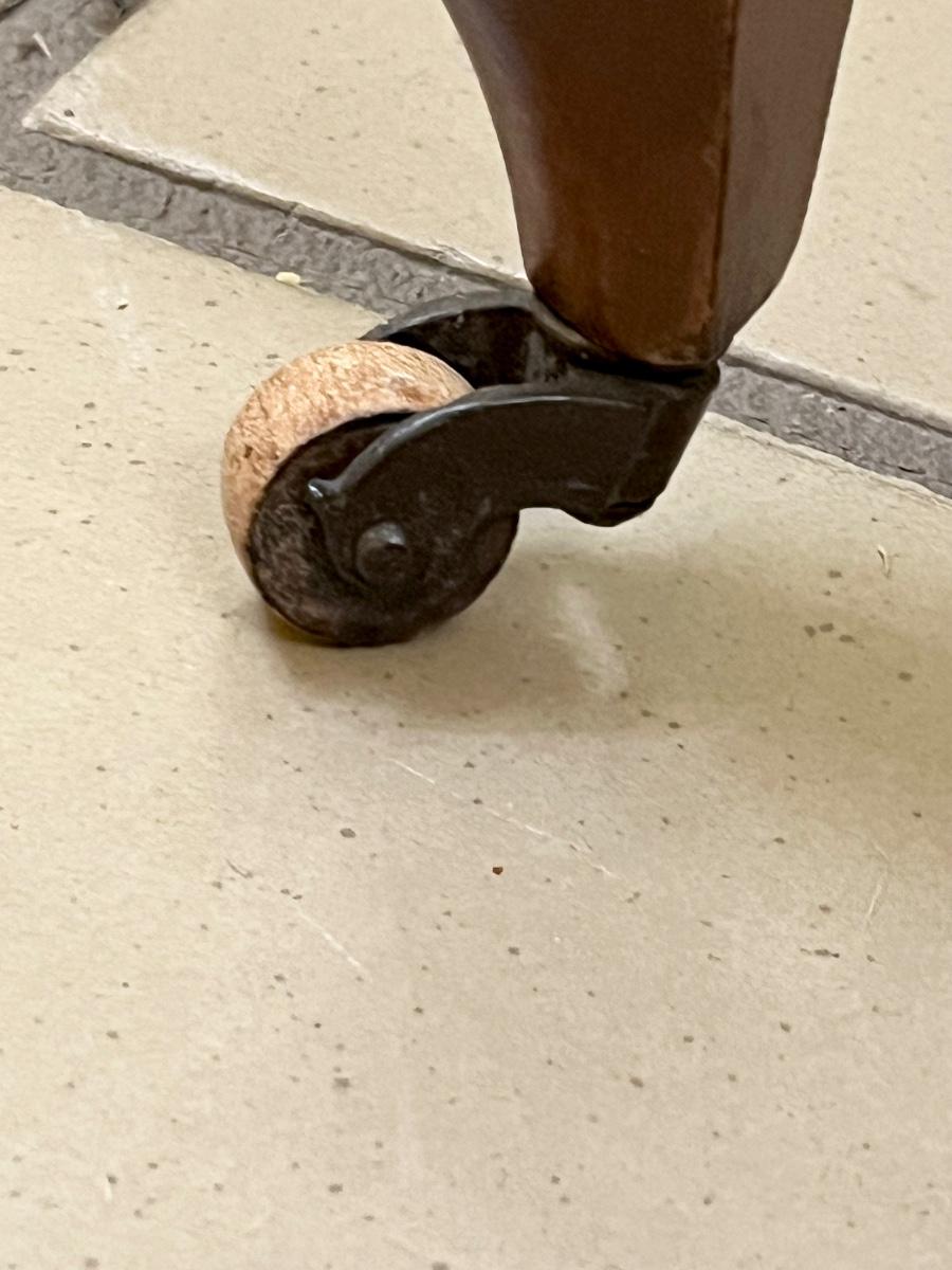 Vtg. Solid Wood Carved Chair With Wood Casters
