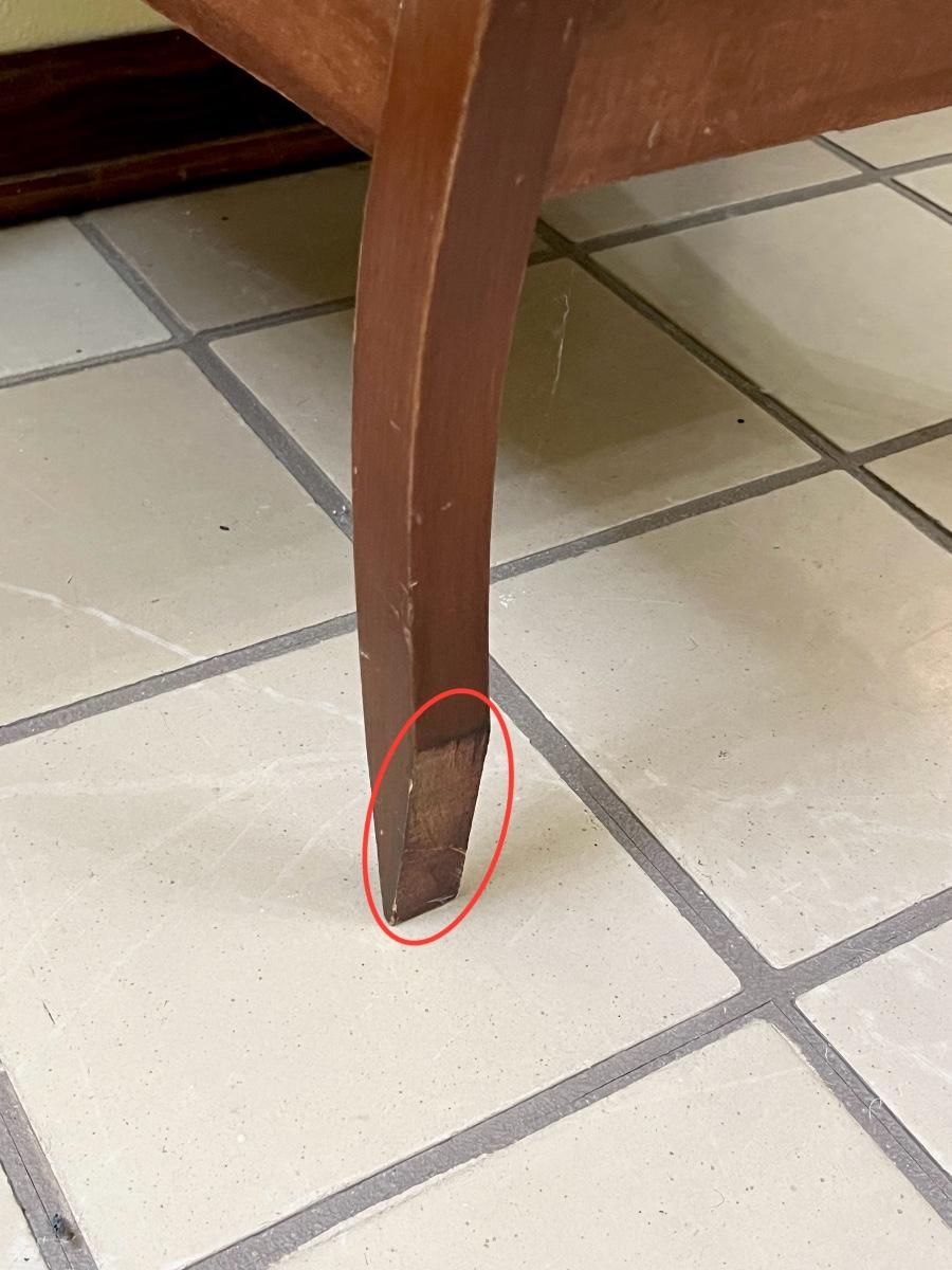36” H x 23” W x 22” D ~ Back leg has wood piece missing as seen in photo but remains very sturdy