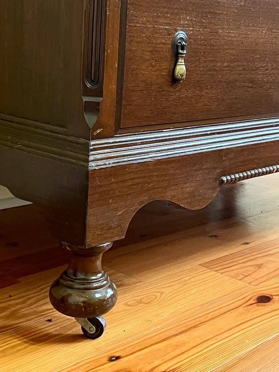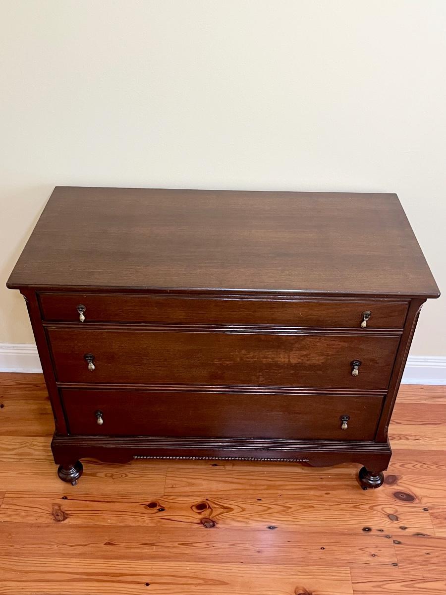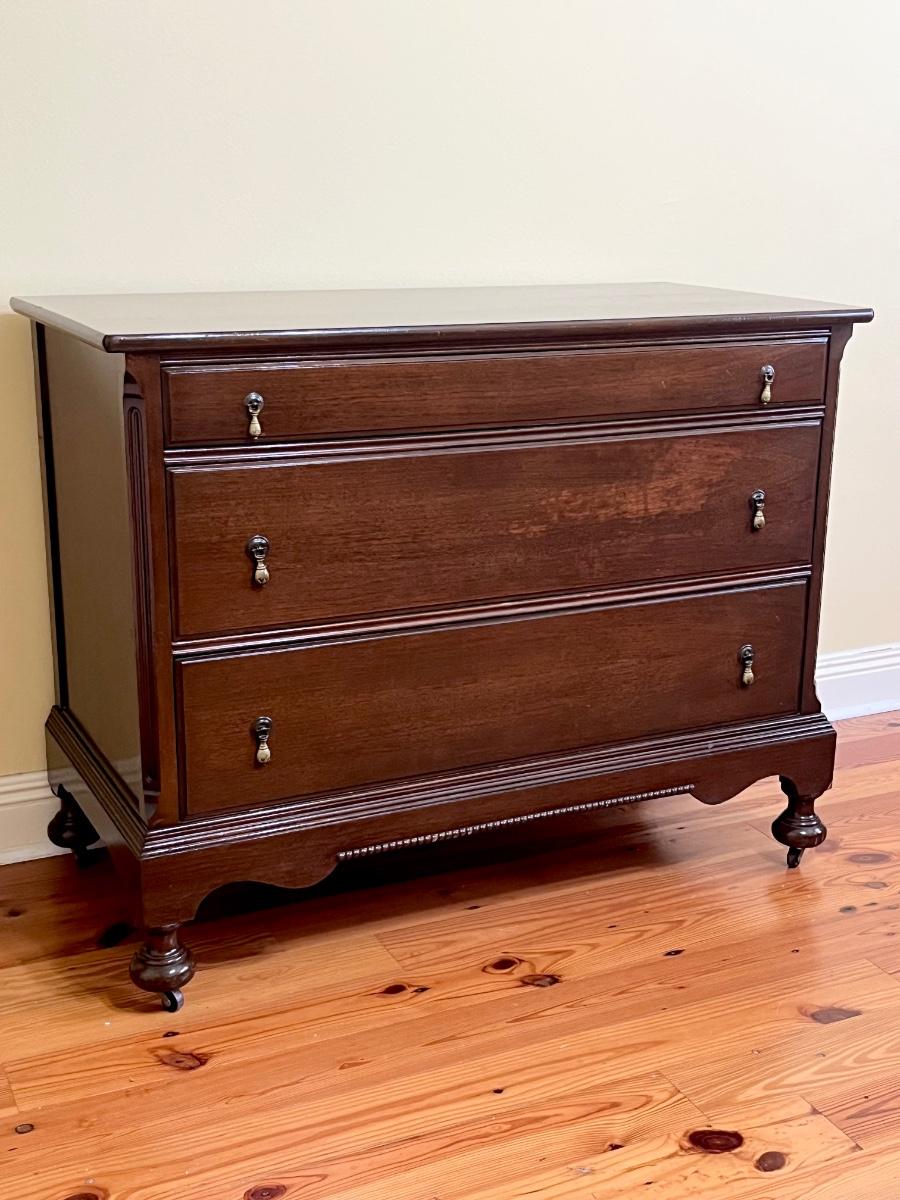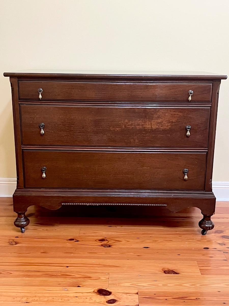 36” H x 46” W x 22” D ~ 3 Drawers slide easily ~ The wheels are not original, they are made of a hard plastic material