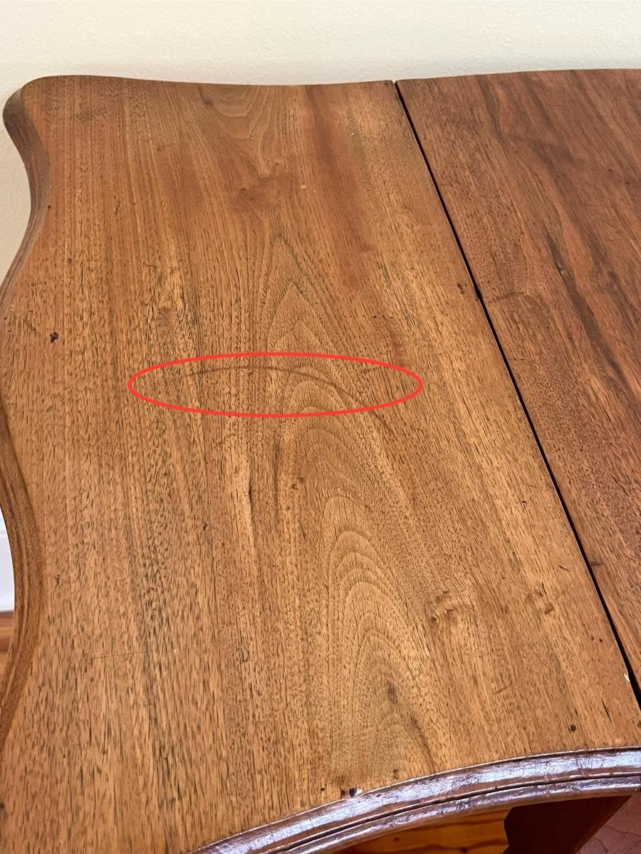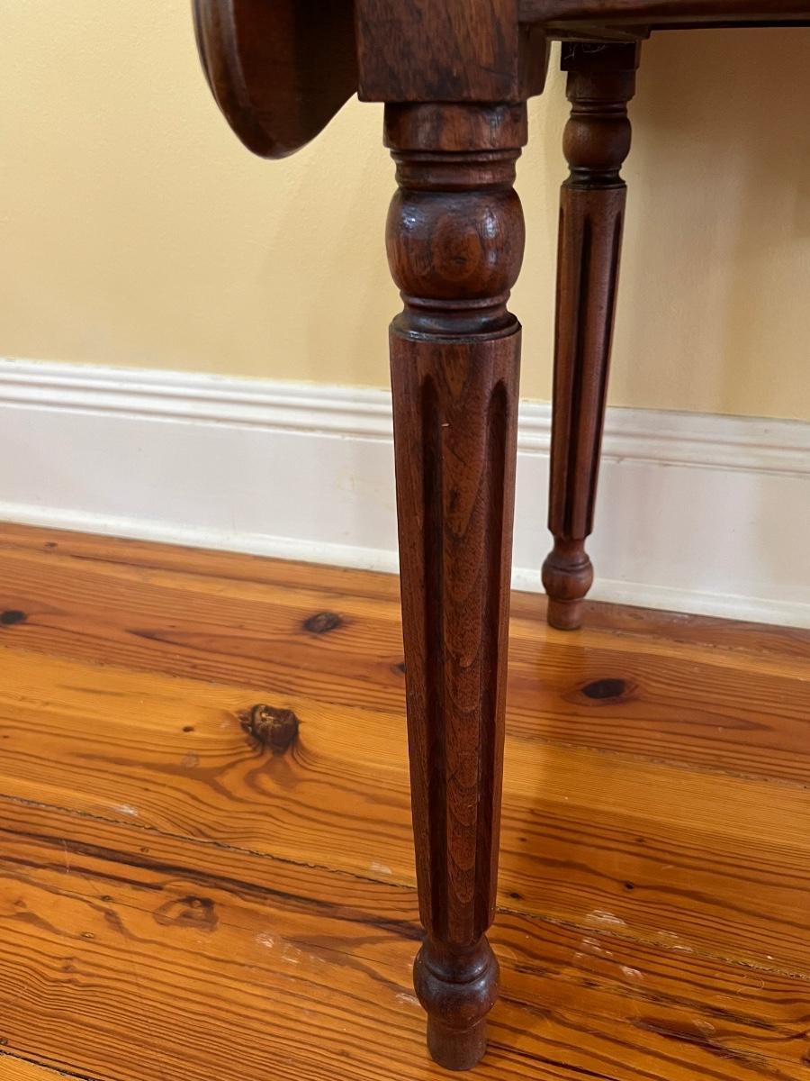 29” H x 19” W x 22” D ~ With drop leaves 39” W ~ No brand name ~ There is a thin dark partial circle on left leaf as seen in photo.