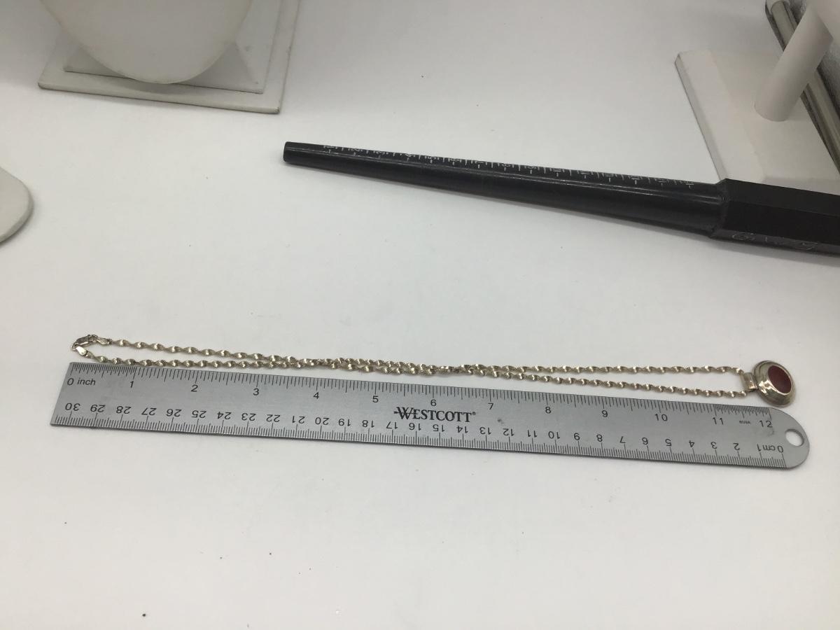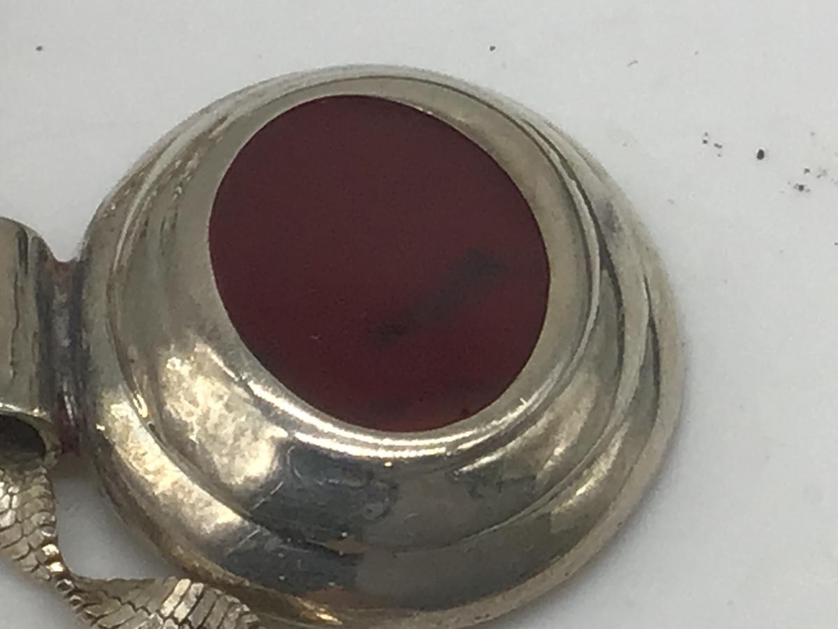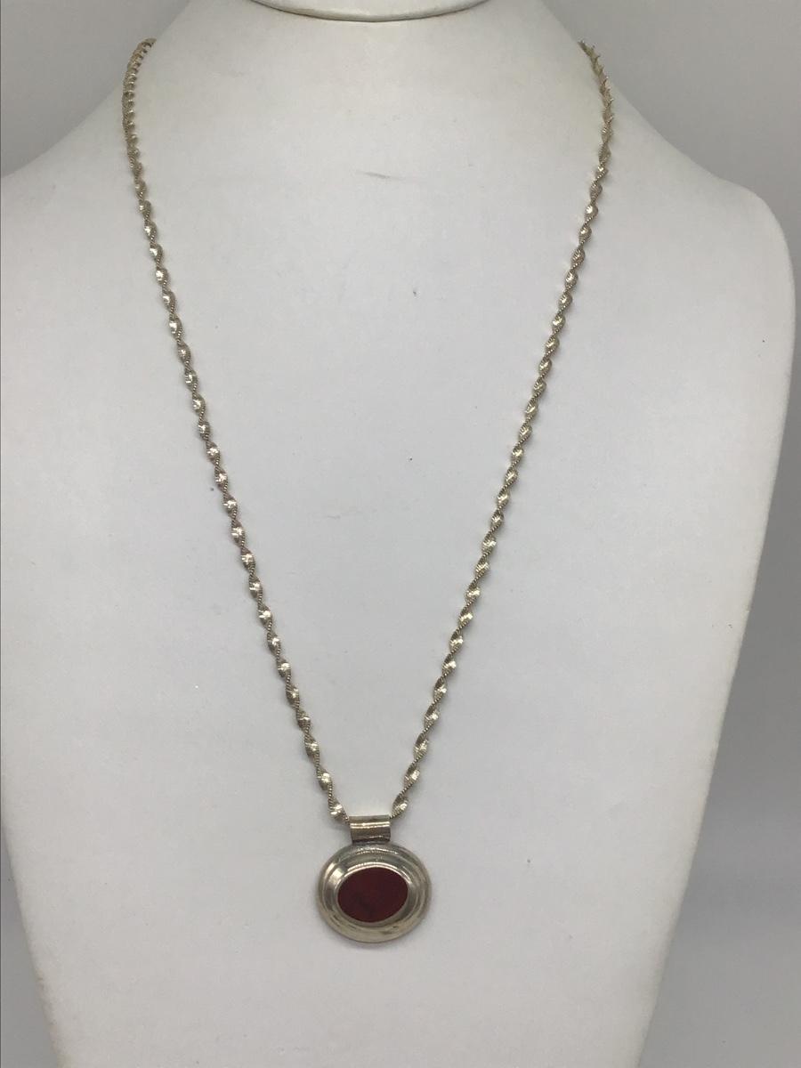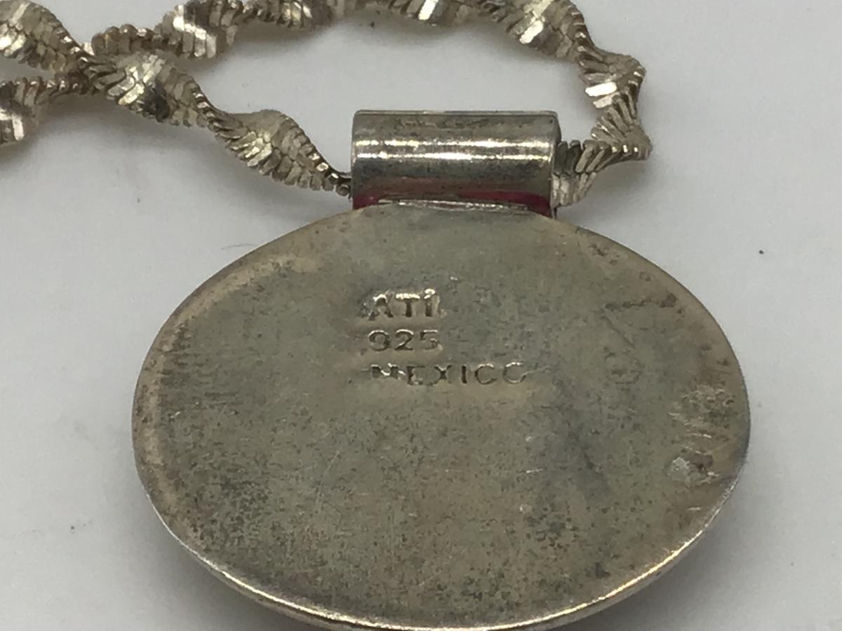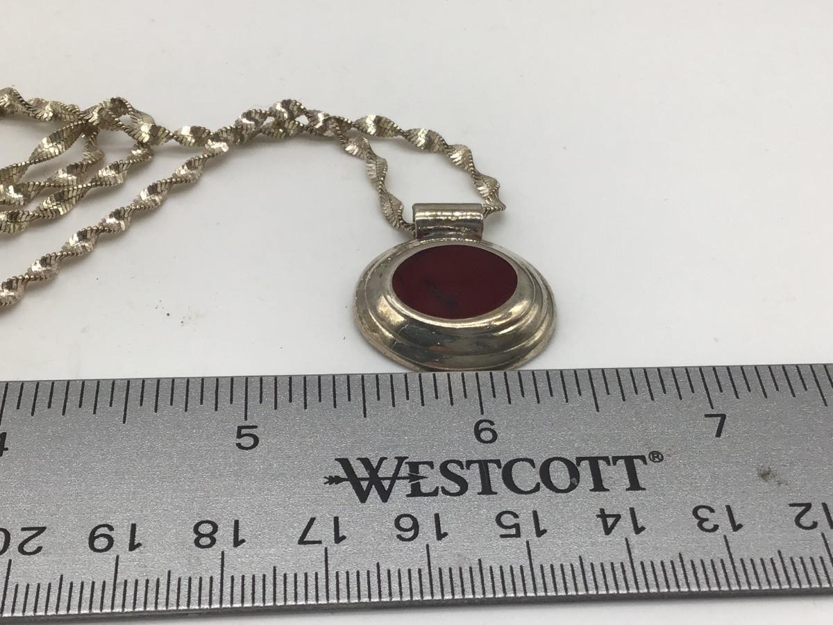 VTG Sterling Silver - MEXICO Red Stone Marked Pendant. Nice Heavy Chain Marked