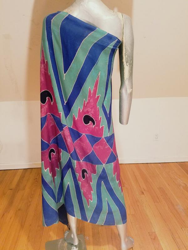 This is an amazing Rare Toga very large shawl that is dyed by stones in a tie dye fashion with fringes. Can be worn as a cover dress Toga ,Shawl ,etc.Amazing colors and primitive design.