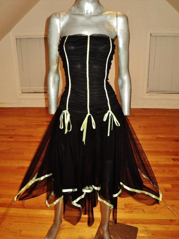 Vtg strapless handkerchief high low tulle dress with ribbons