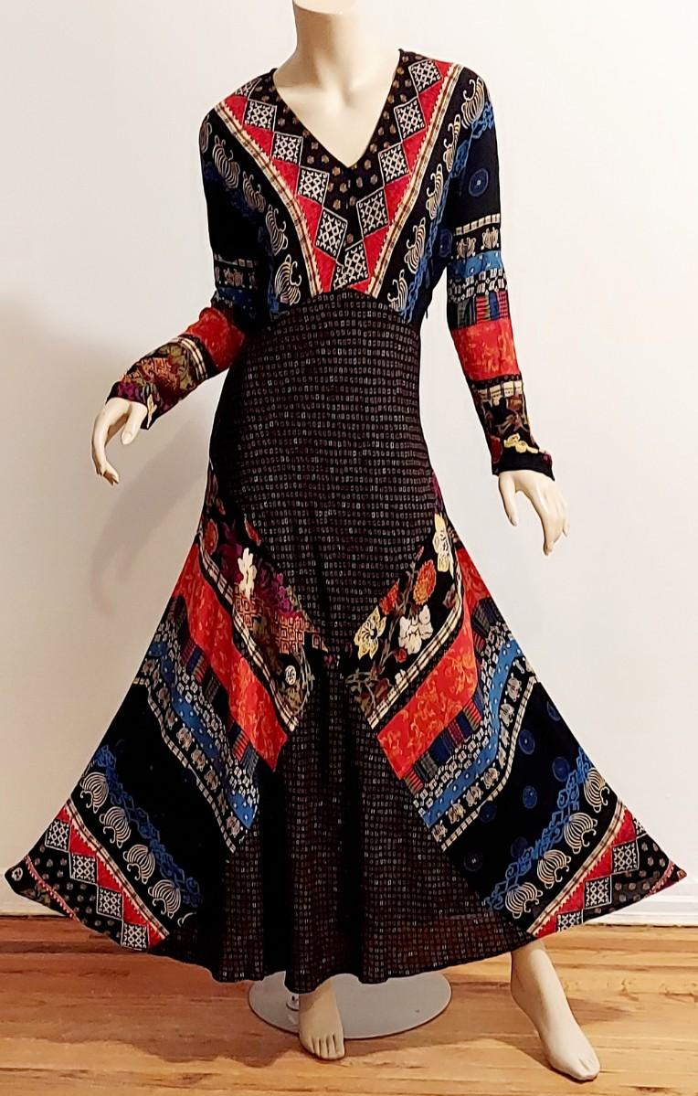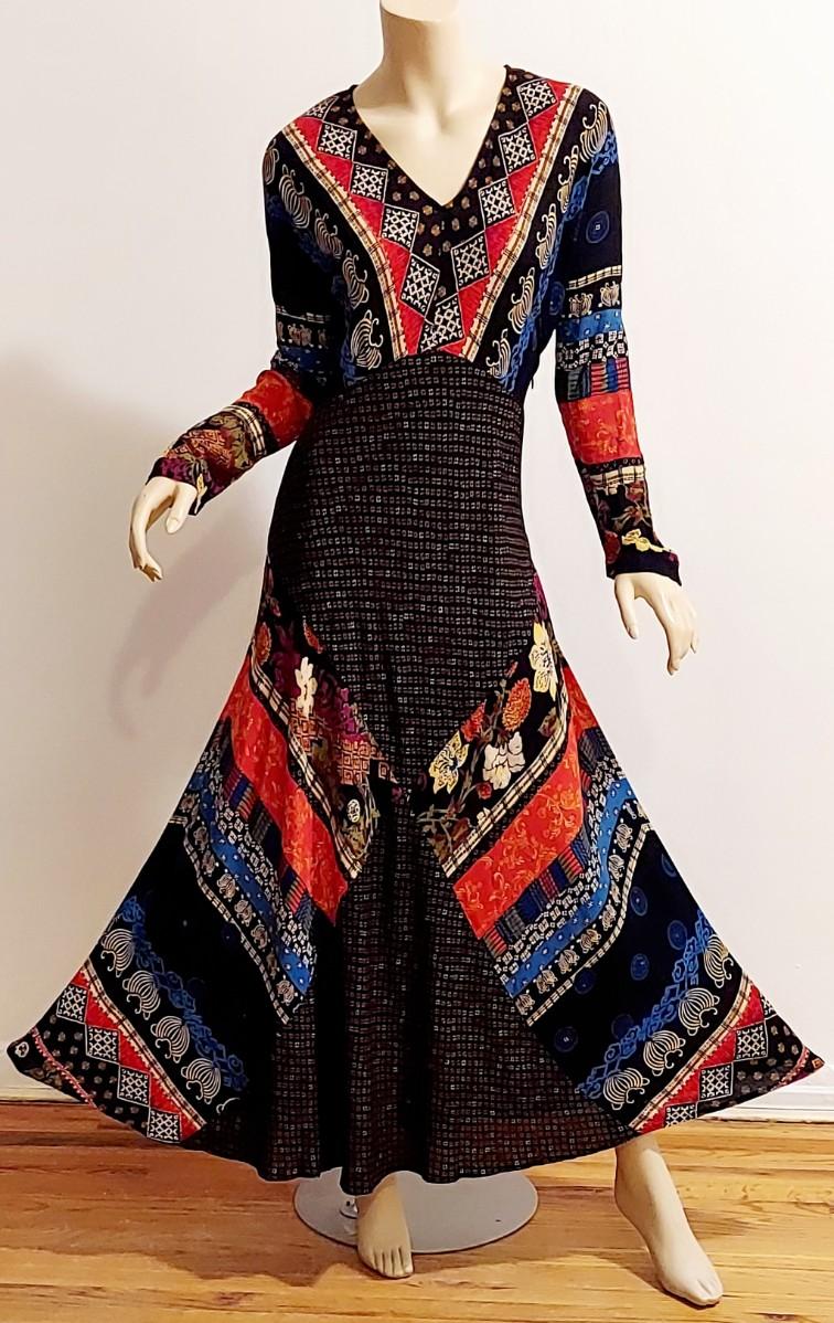 Vtg Stunning Boho Maxi patchwork dress Carol Little fluid Gauze