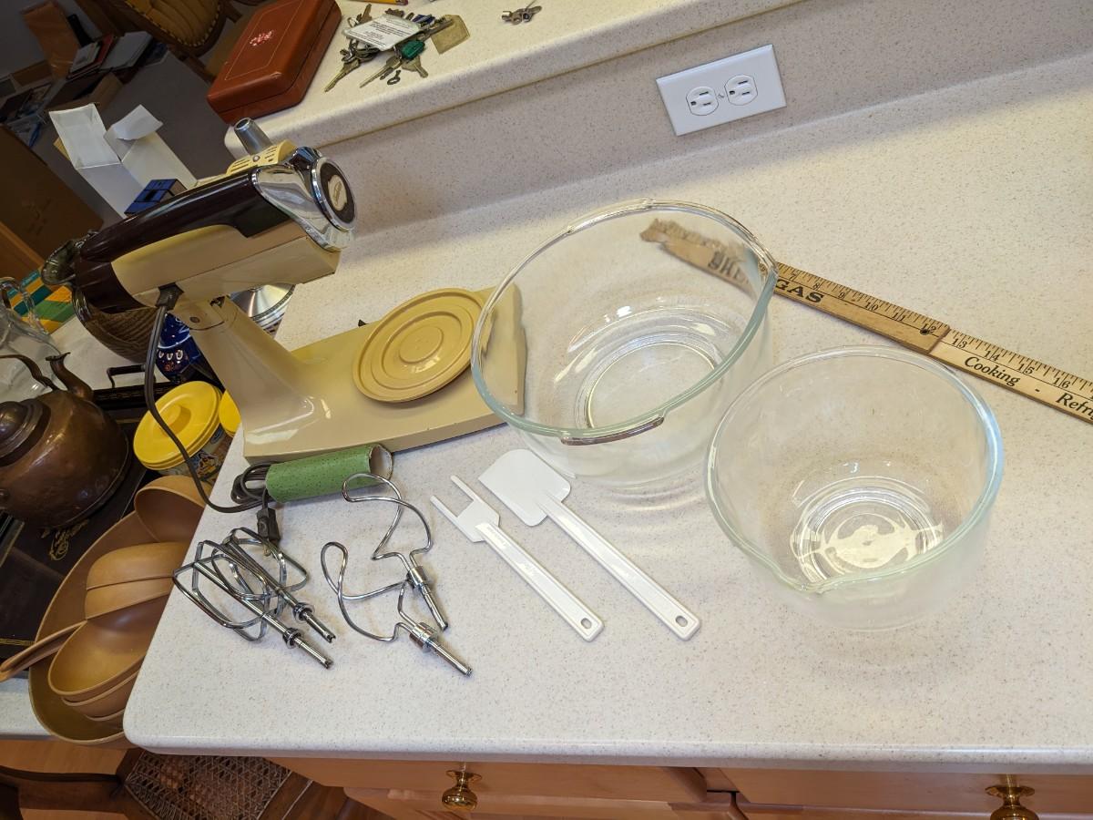 Vtg Sunbeam Mixmaster 12 Spd Mixer +2 Fire King Bowls