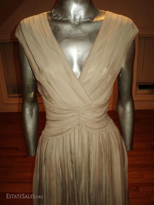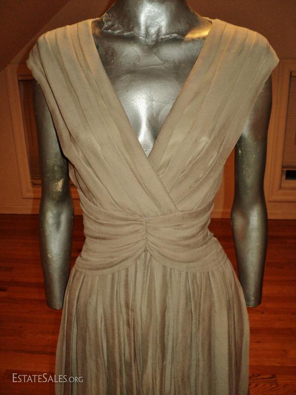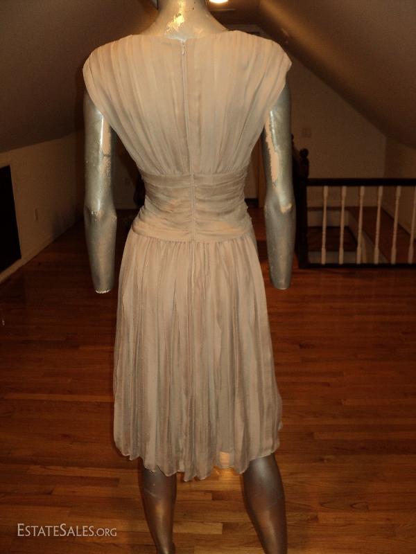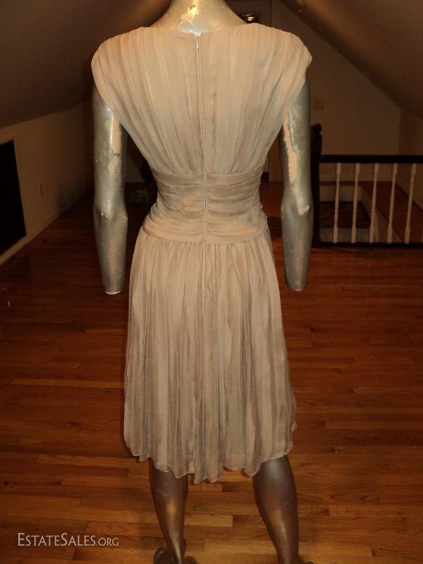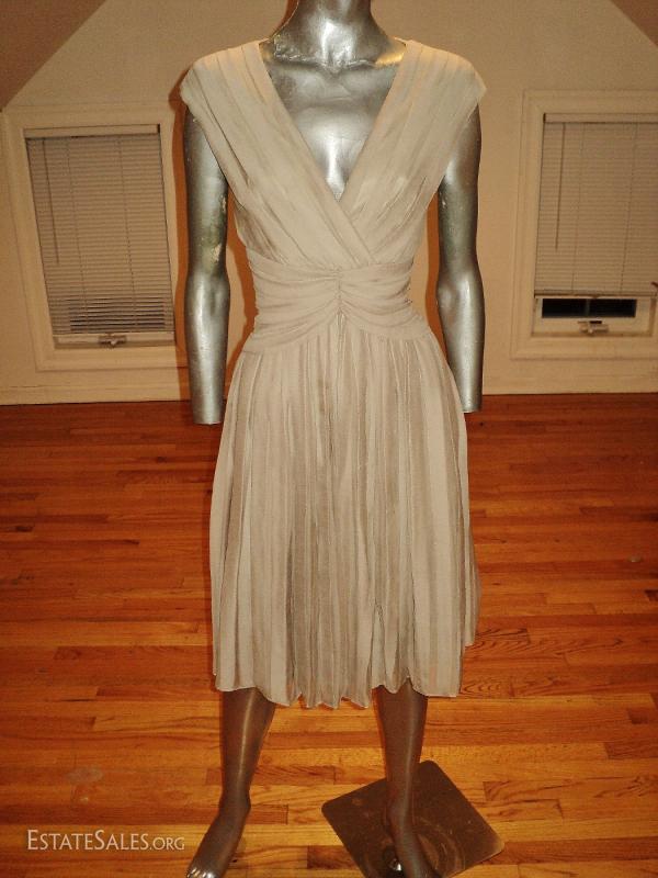 Truly a Classic dress by famous Tadashi. pleated and stitched cross over front with sash.. lined with under layer.