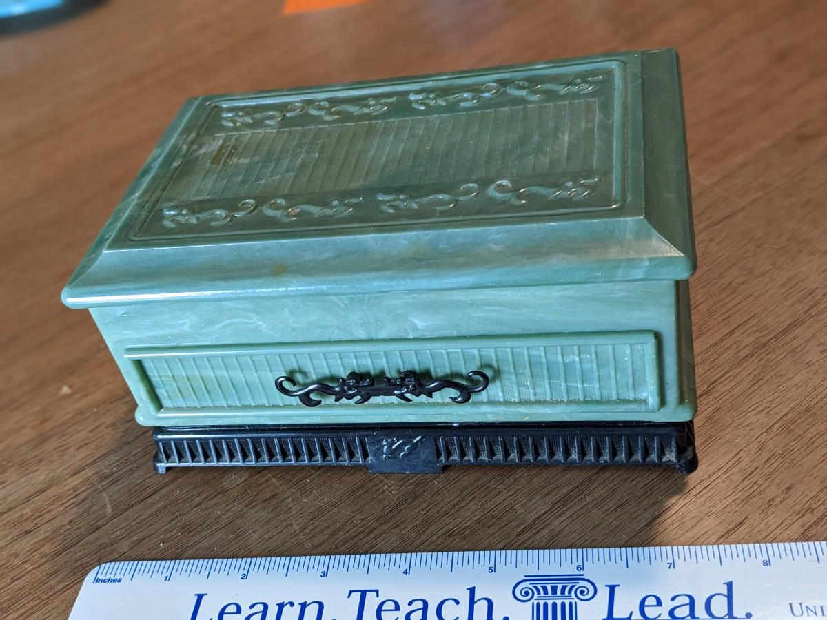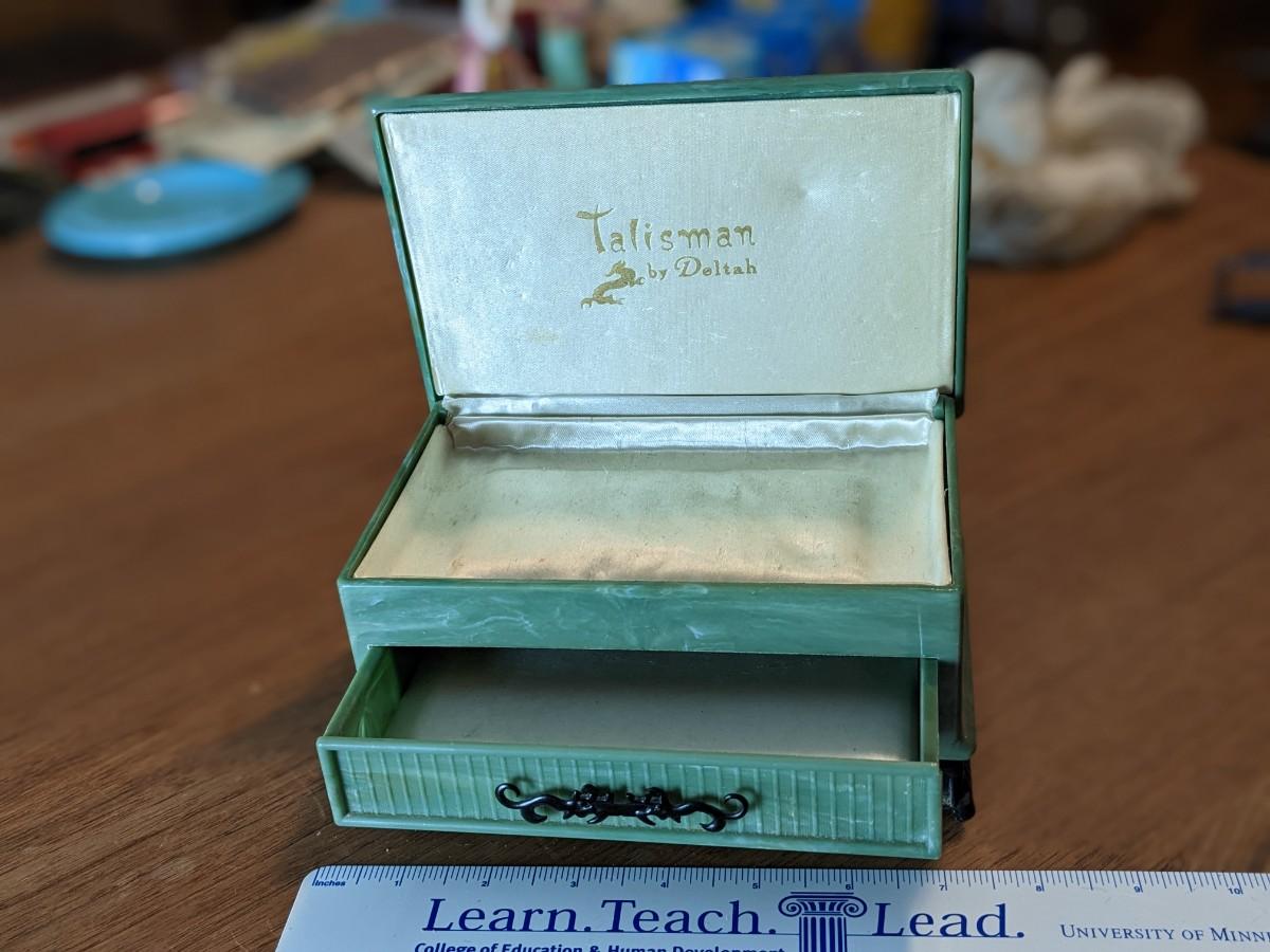 Vtg Talisman By Deltah Green Jade Look Celluloid Jewelry Box