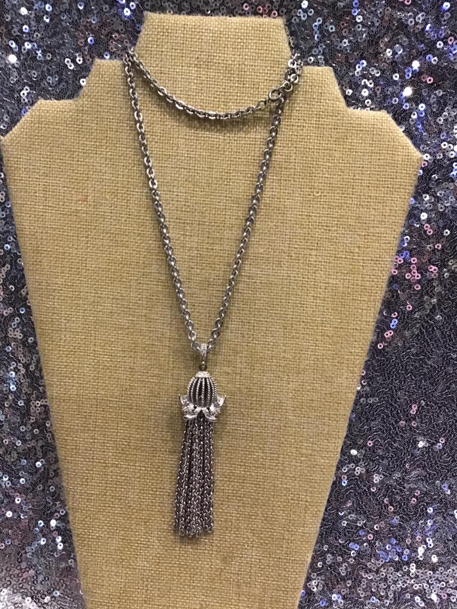 VTG Tassel Dangle Chain Necklace Silver Tone