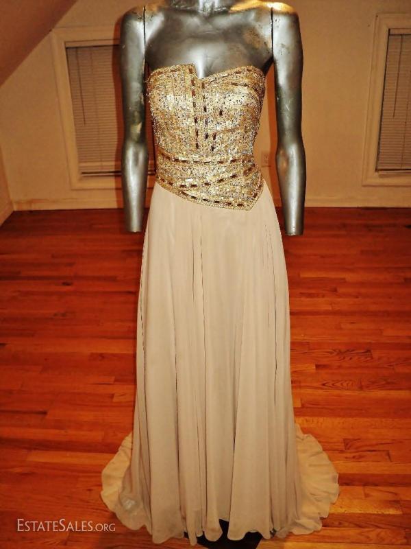 This is a gorgeous Couture gown That is heavily embellished at bodice all in gold lame beads