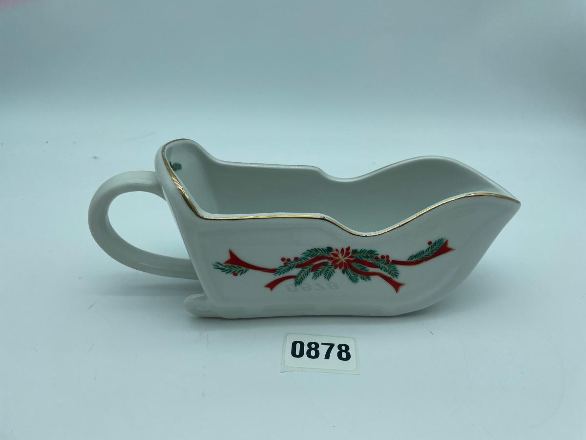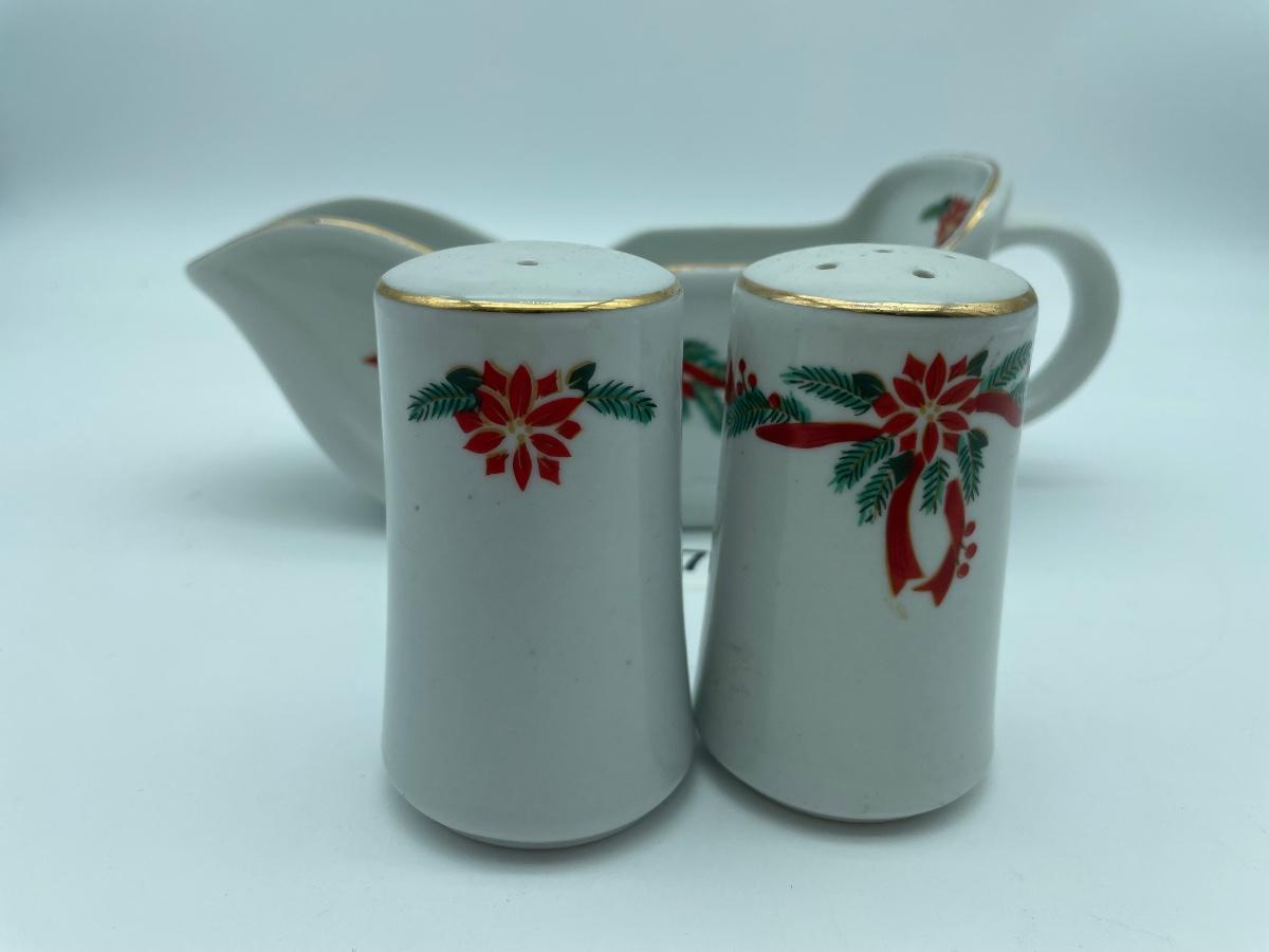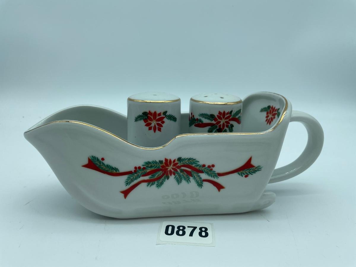 Vtg Tienshan Christmas gravy sleigh boat and salt & pepper shakers