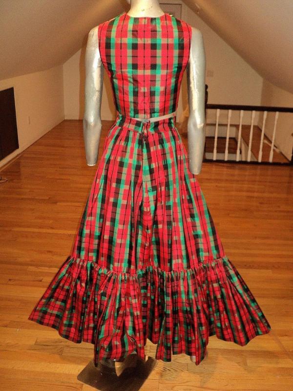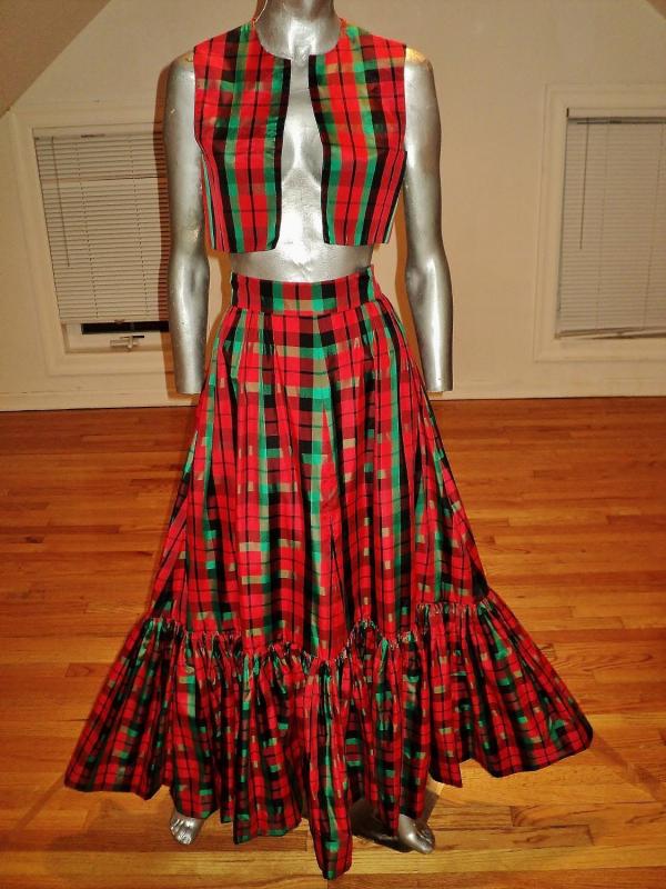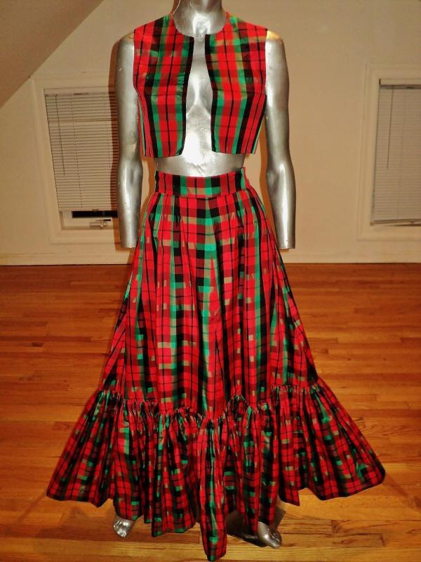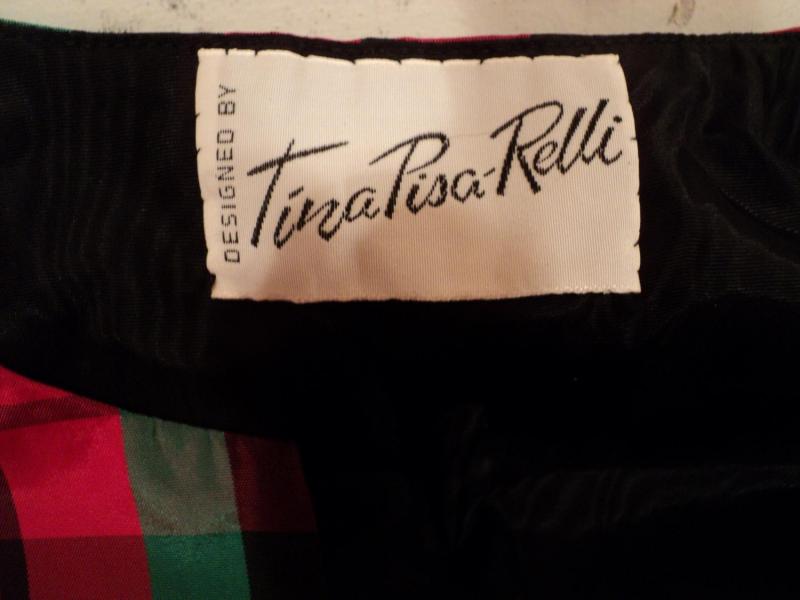 Red Green chex Italy Ensemble silk shantung designer Tina Pisa-Relli
