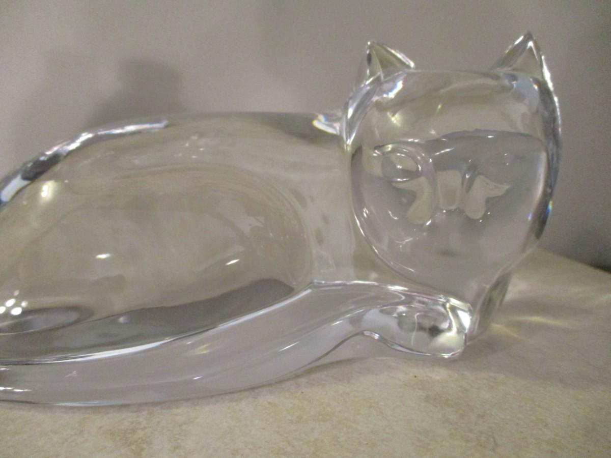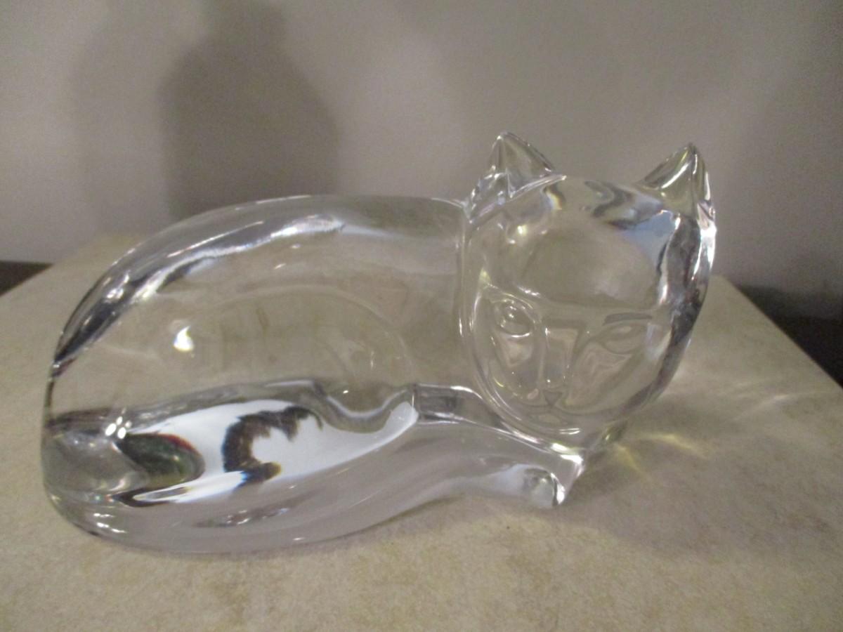 Vtg Val St.Lambert Crystal Cat Figurine/Paperweight Signed de Sousa