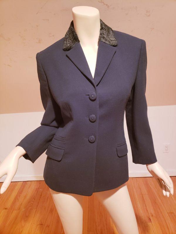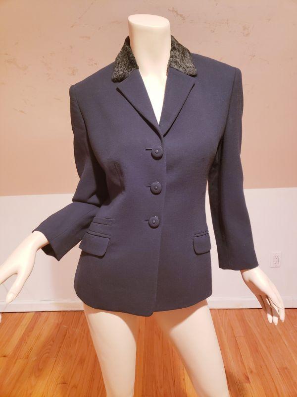 Elongated pocket details . Faux Fur Collar. and Versace buttons.