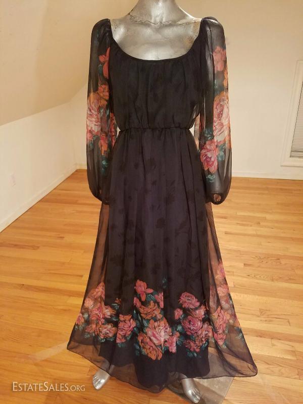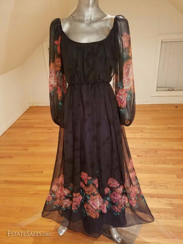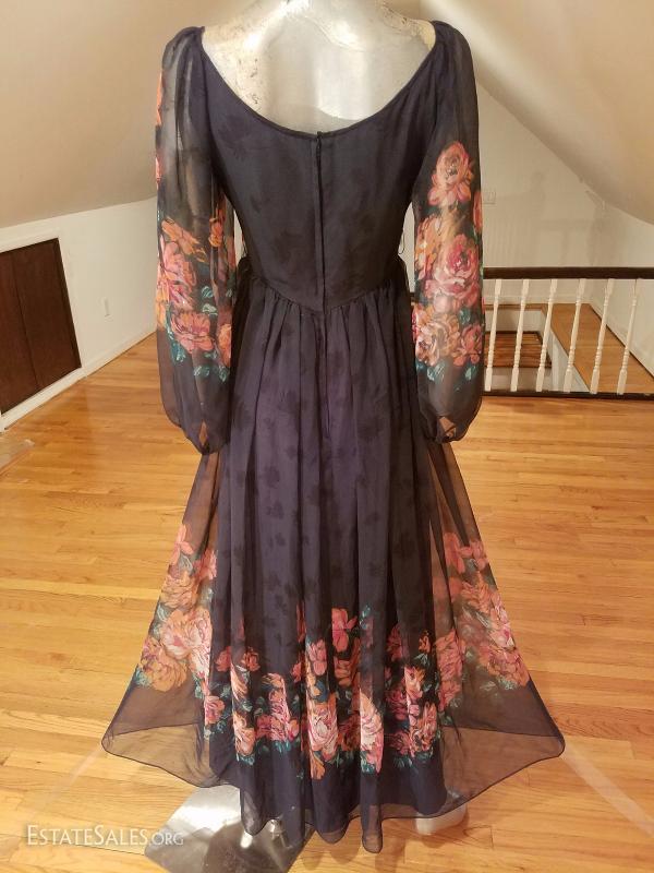 This one is from the early 1970's By famous designer Victor Costa but this label is a rare one since it is The Victor Costa LTD which he first established in 1973 while going solo on his own. Producing his own version of American and French designer clothing. This one is an Example of that era of French country girl look . Amazing gown and very collectible. size 8 Please follow my measurements.