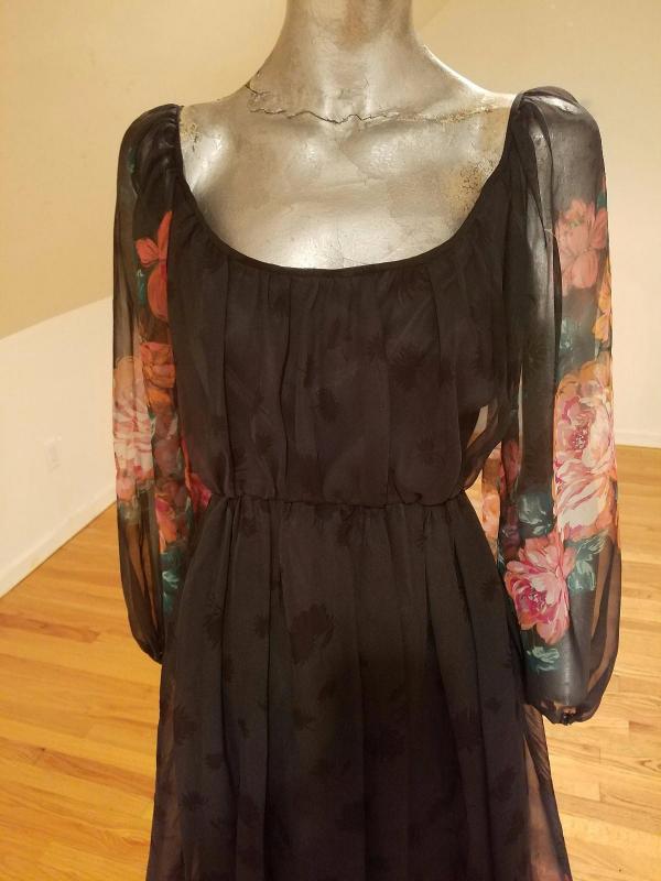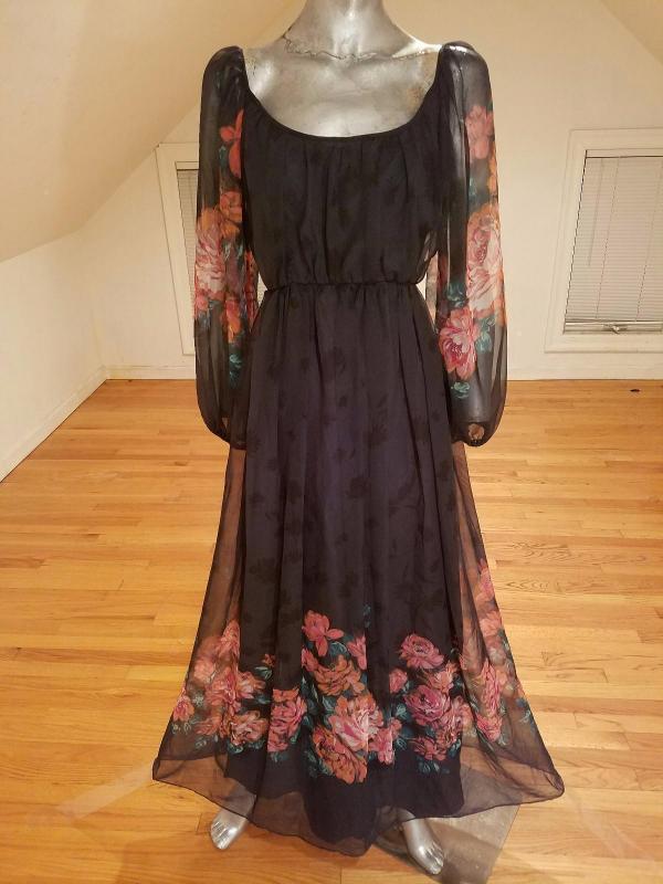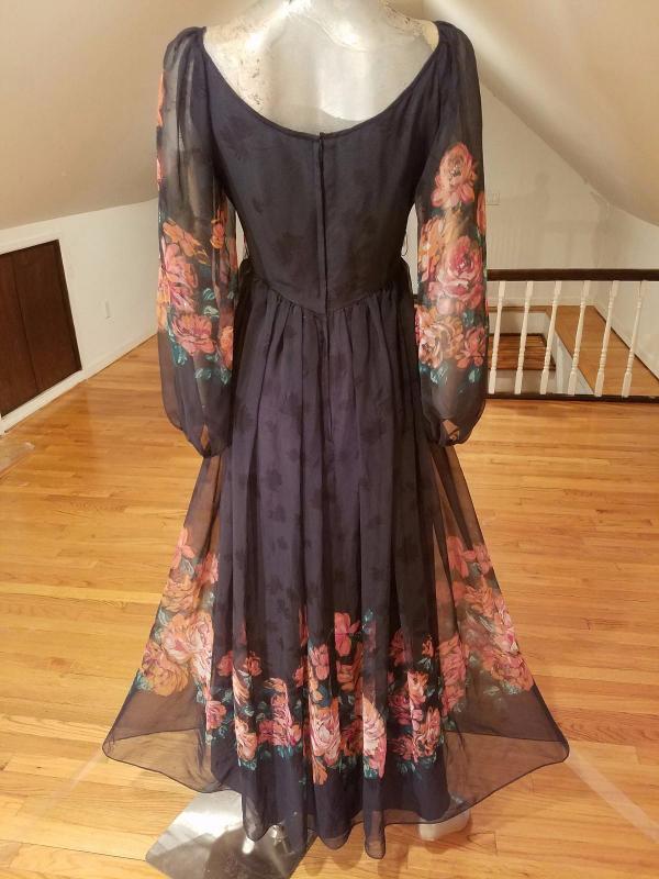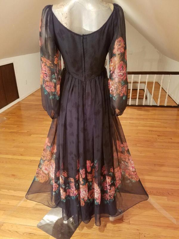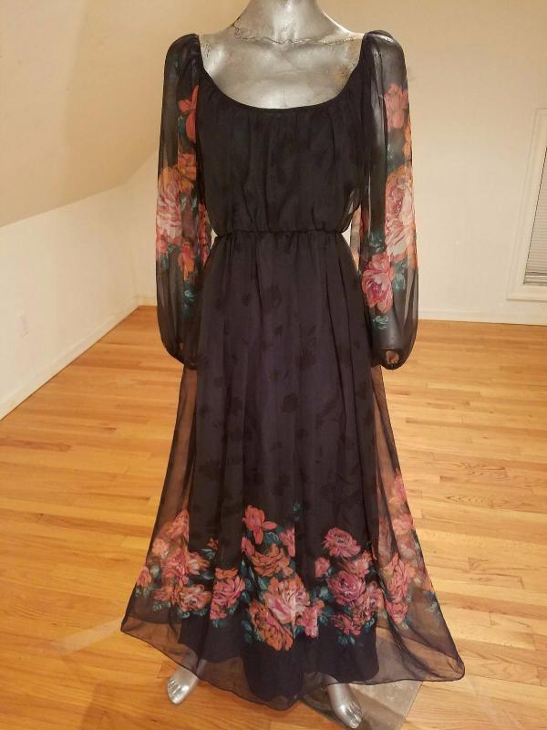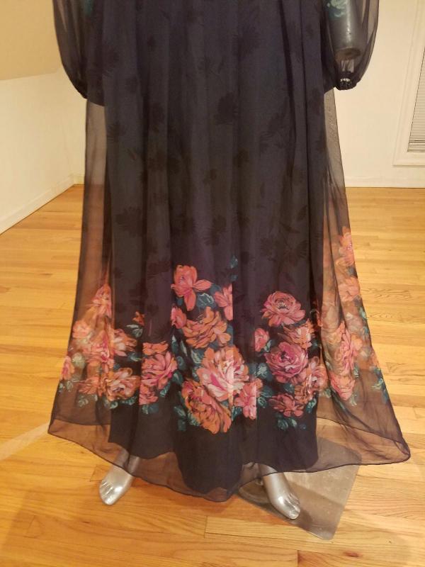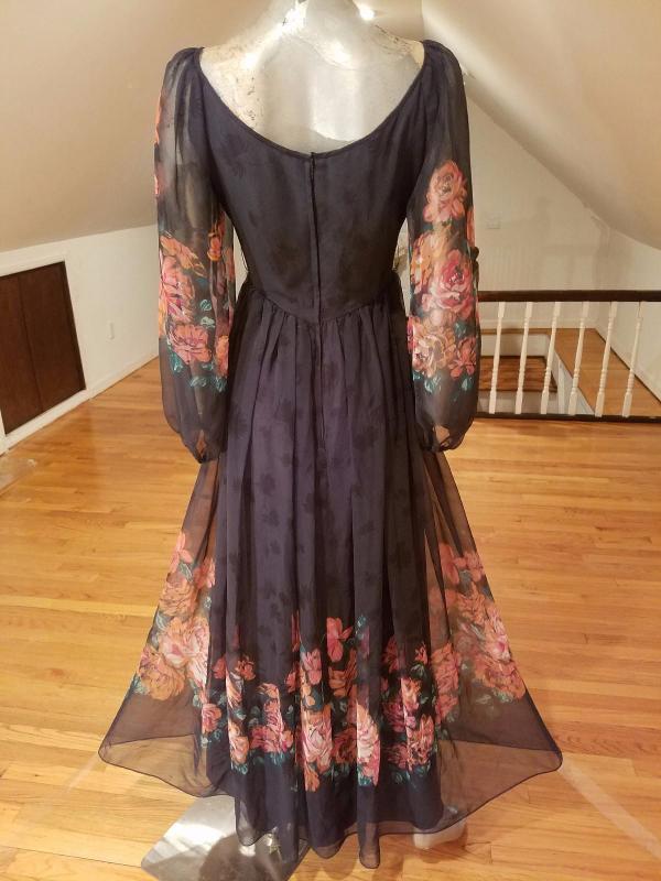 Vtg Victor Costa 1970's floral chiffon maxi gown semi empire