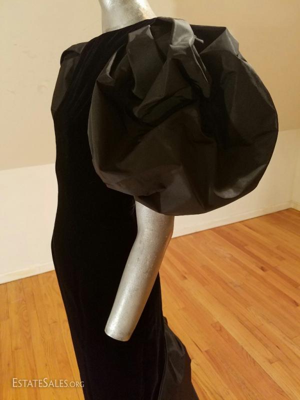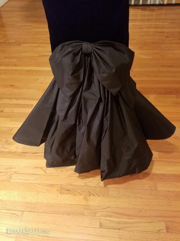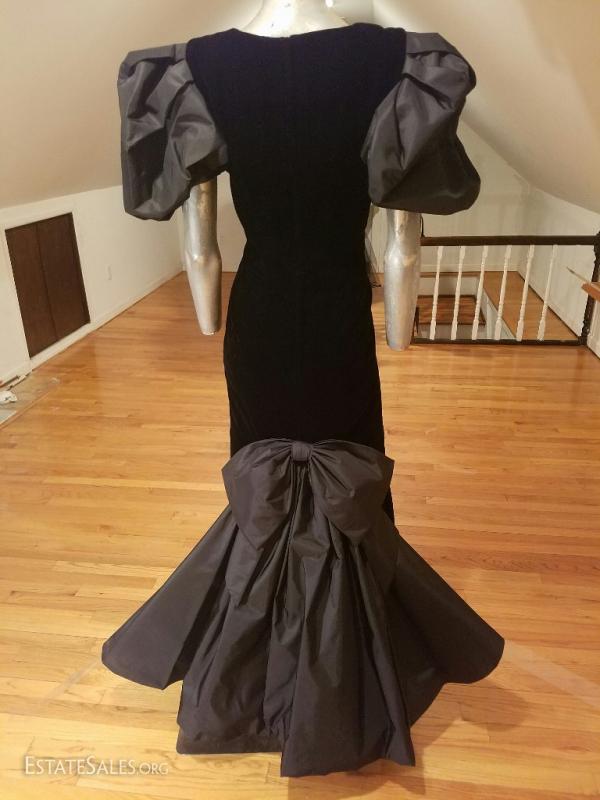 A magnificent couture gown by Victor Costa from the 1980's used on Runway for Bergdorf Goodman 5th ave. Taffeta and velour with amazing train and bow detail