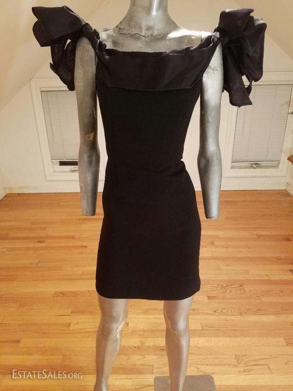 Stunning designer couture dress by famous Victor Costa for Bergdorf Goodman .Cocktail crepe and organza dress with amazing details at shoulder.