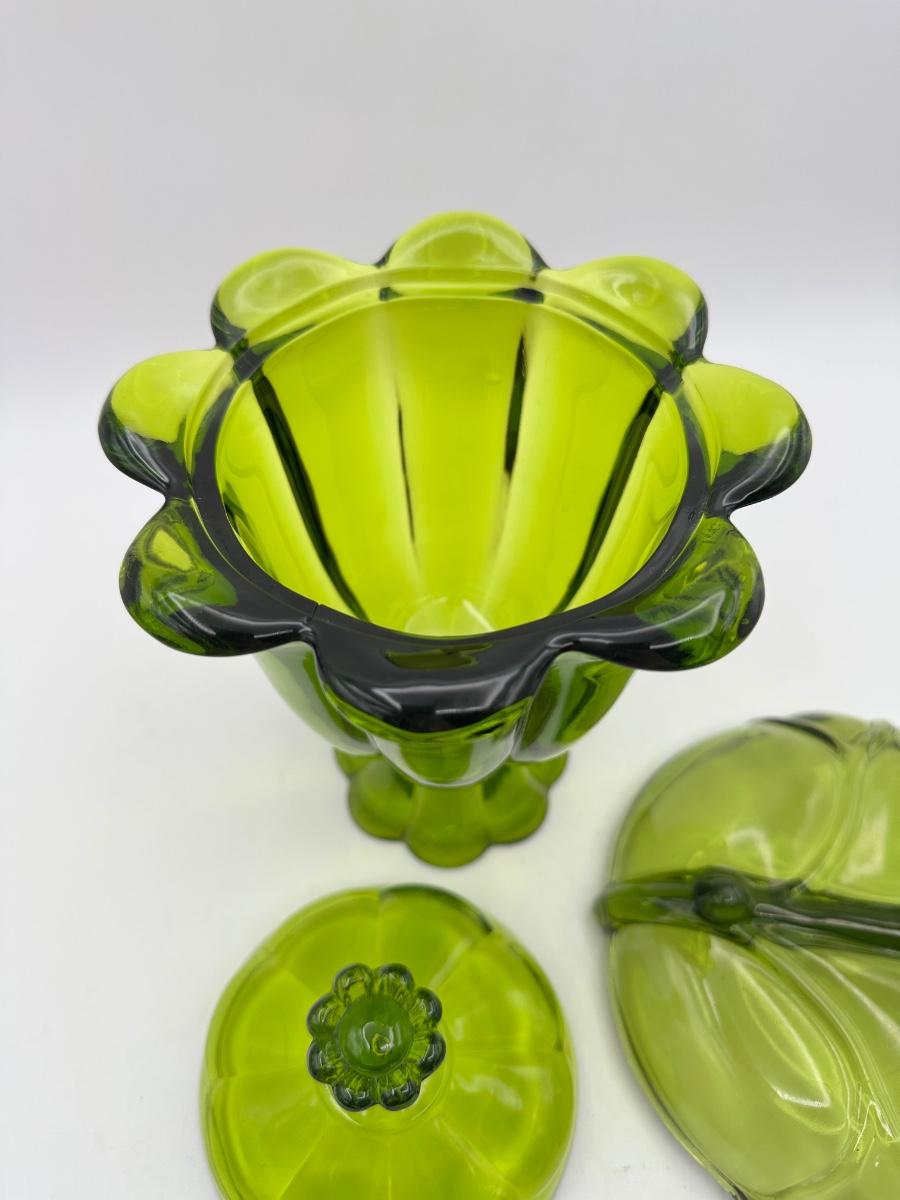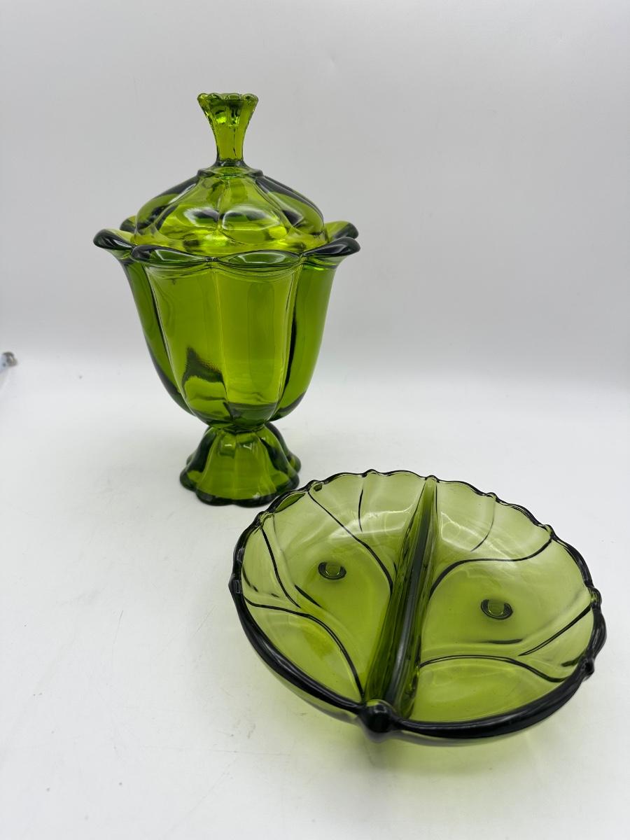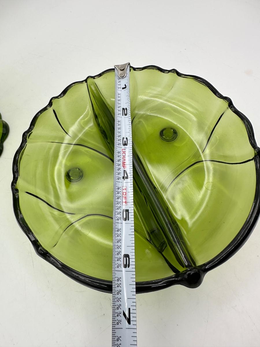 VTG Viking Glass “Epic 6 Petal” Candy Dish and Divided Serving Dish in Avocado Green
