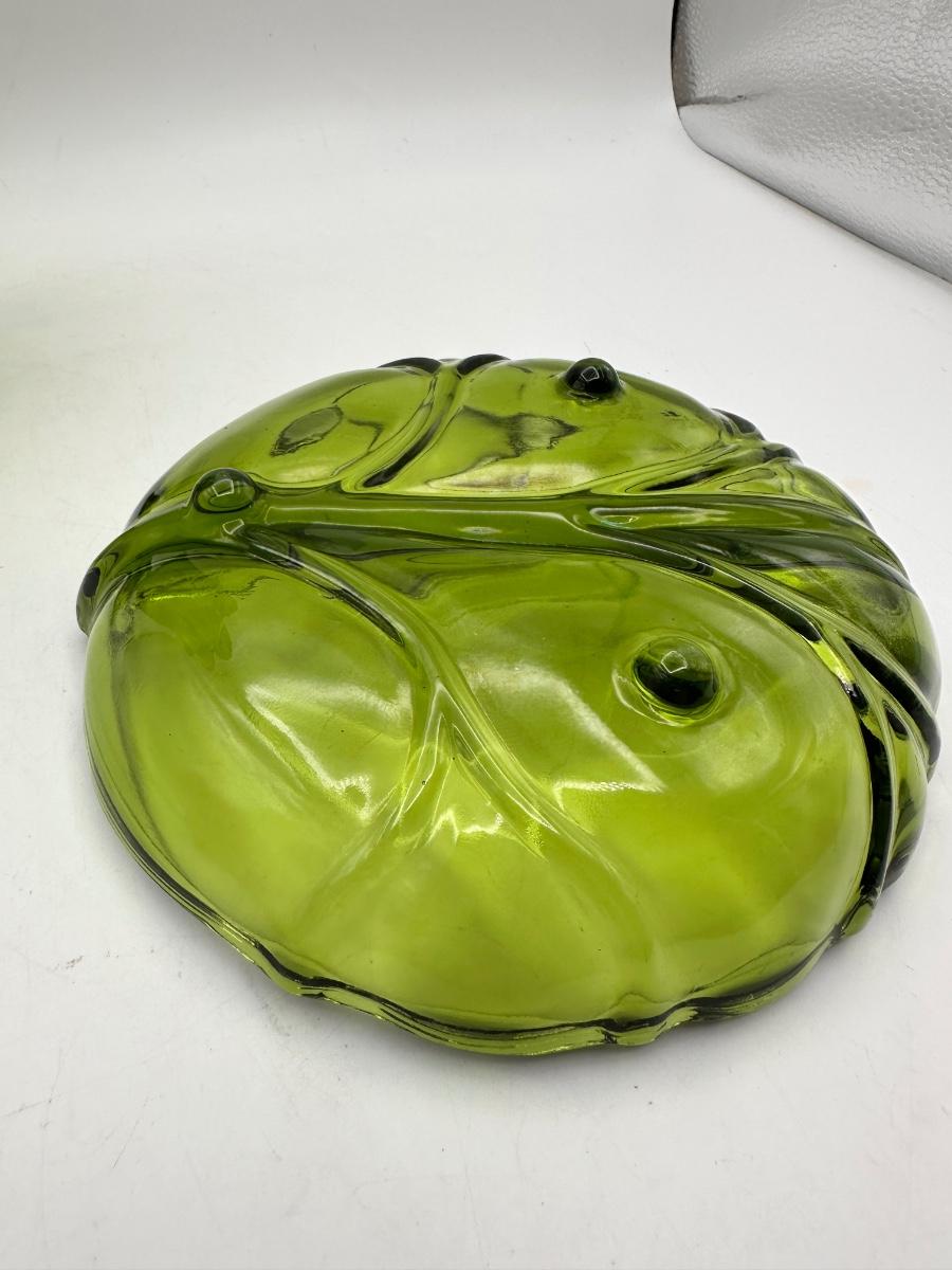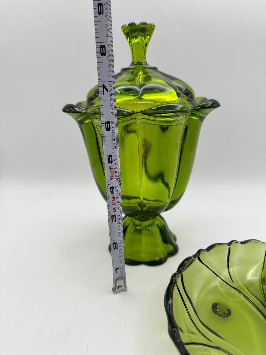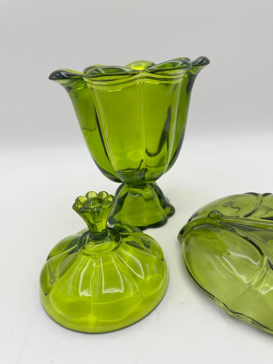VTG Viking Glass “Epic 6 Petal” Candy Dish and Divided Serving Dish in Avocado Green