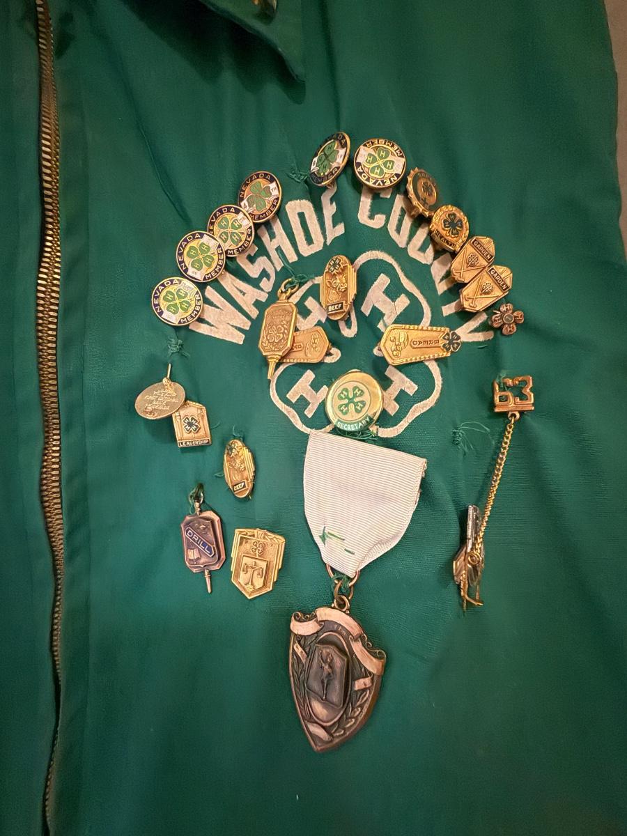Vintage green Washoe Cty. 4H Jacket w/lots of pins