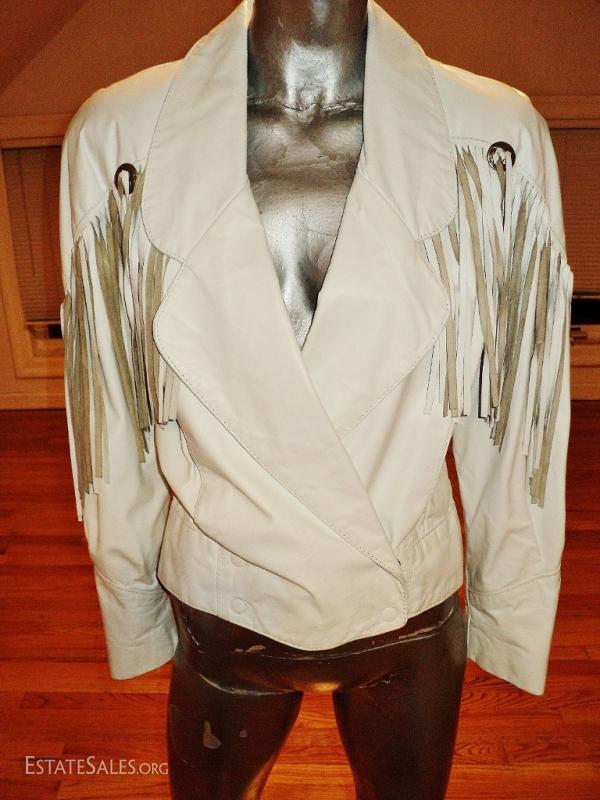 Genuine white leather western Jacket with fringes Embossed metal silver hardware.