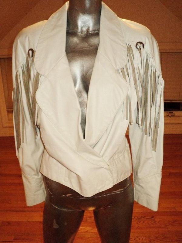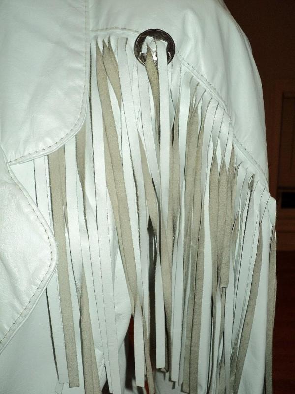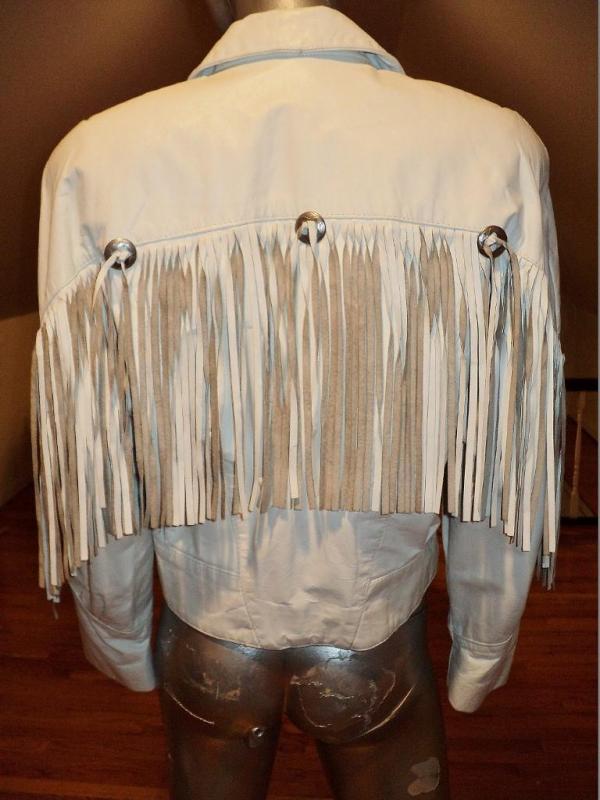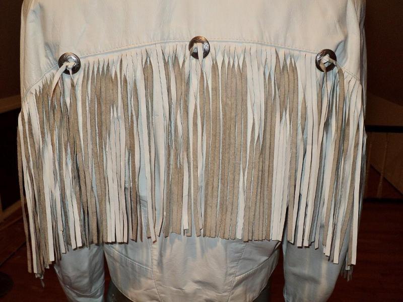 Genuine white leather western Jacket with fringes Embossed metal silver hardware.