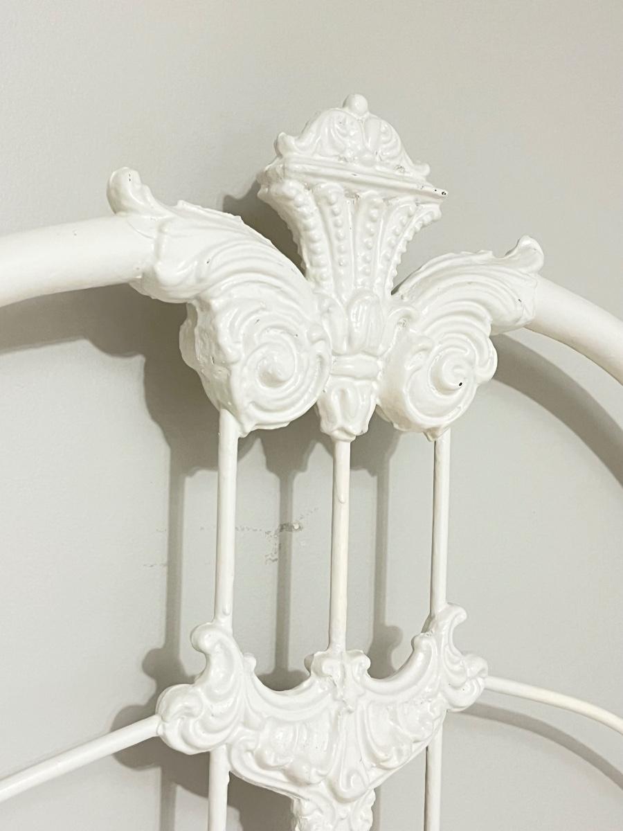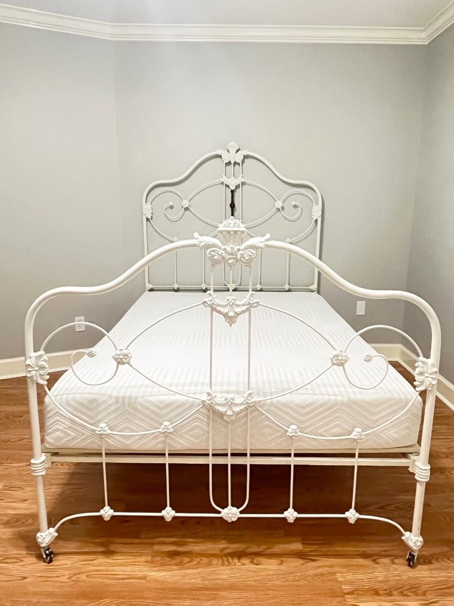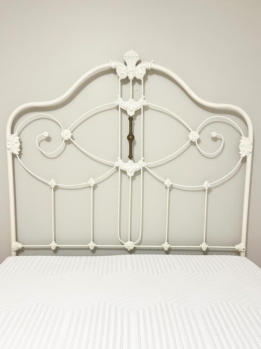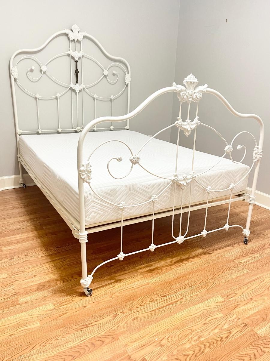 Vtg. White Iron Full Size Bed With Mattress
