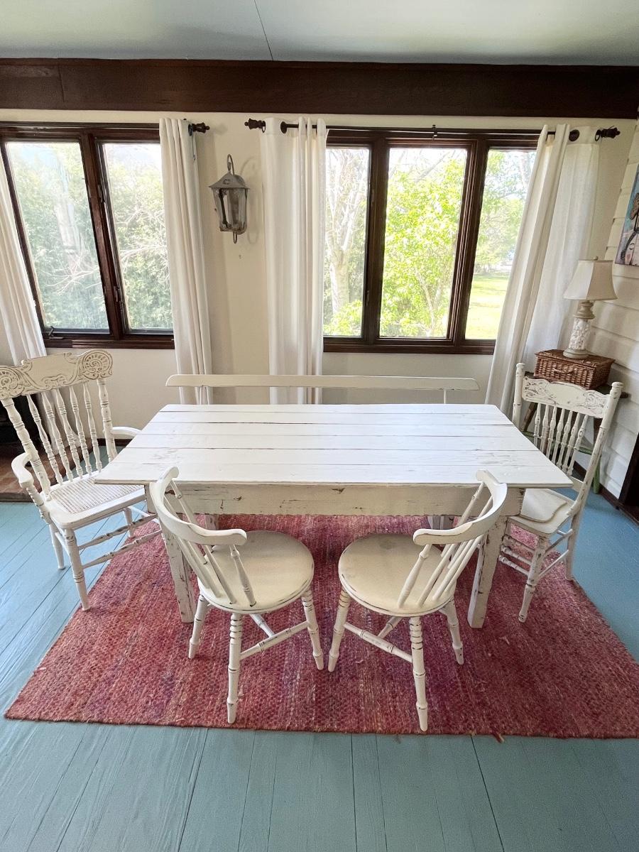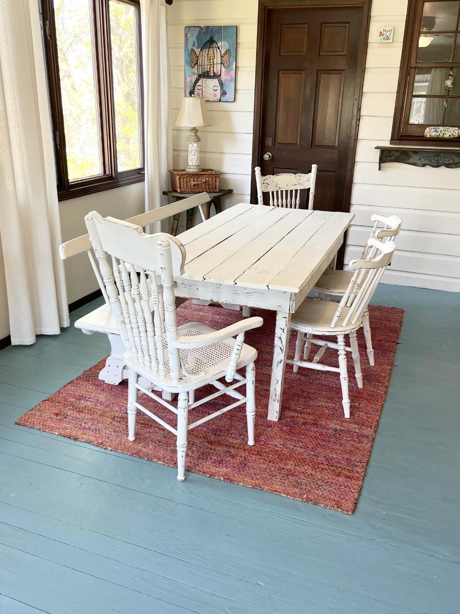 Farmhouse Table With Bench & 4 Mix Match Distressed Chairs ~ Painted & Distressed