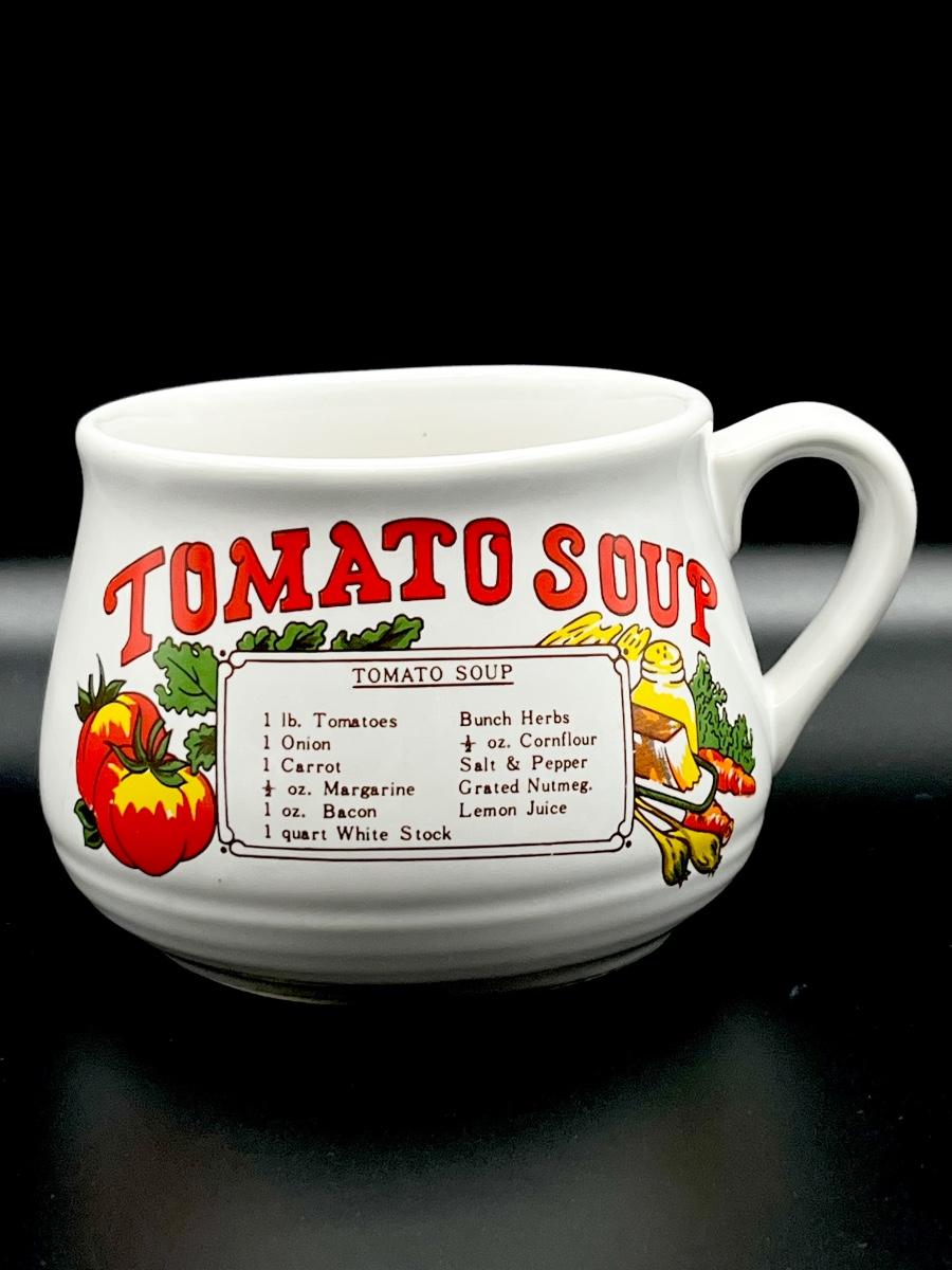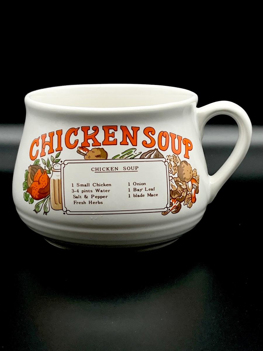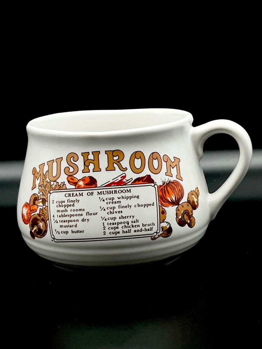 Vtg. Wide Soup Mugs With Recipe ~ Set Of Four (4)