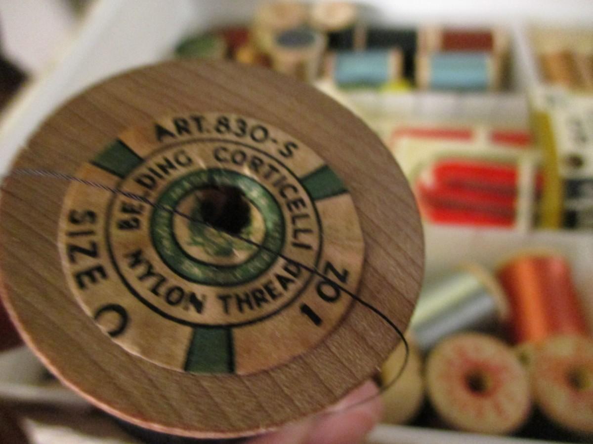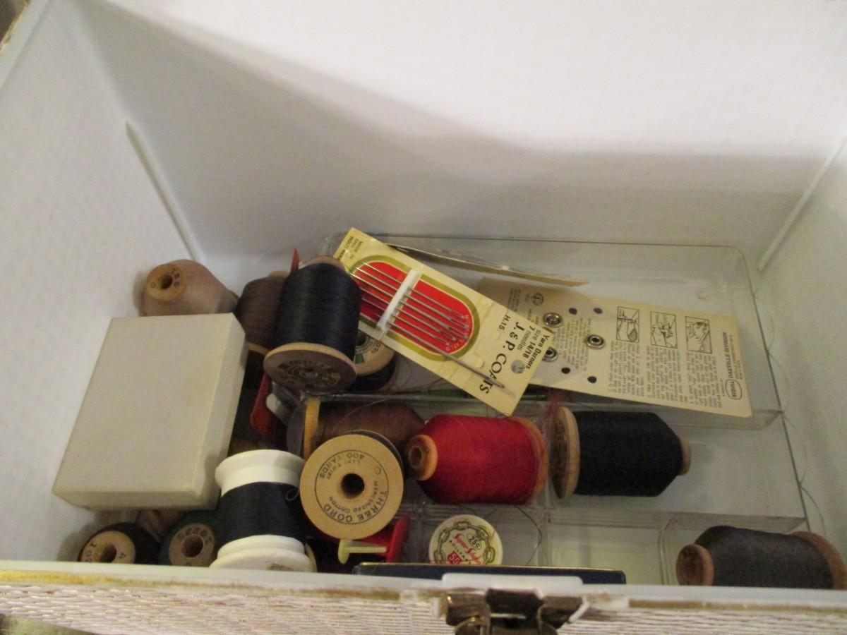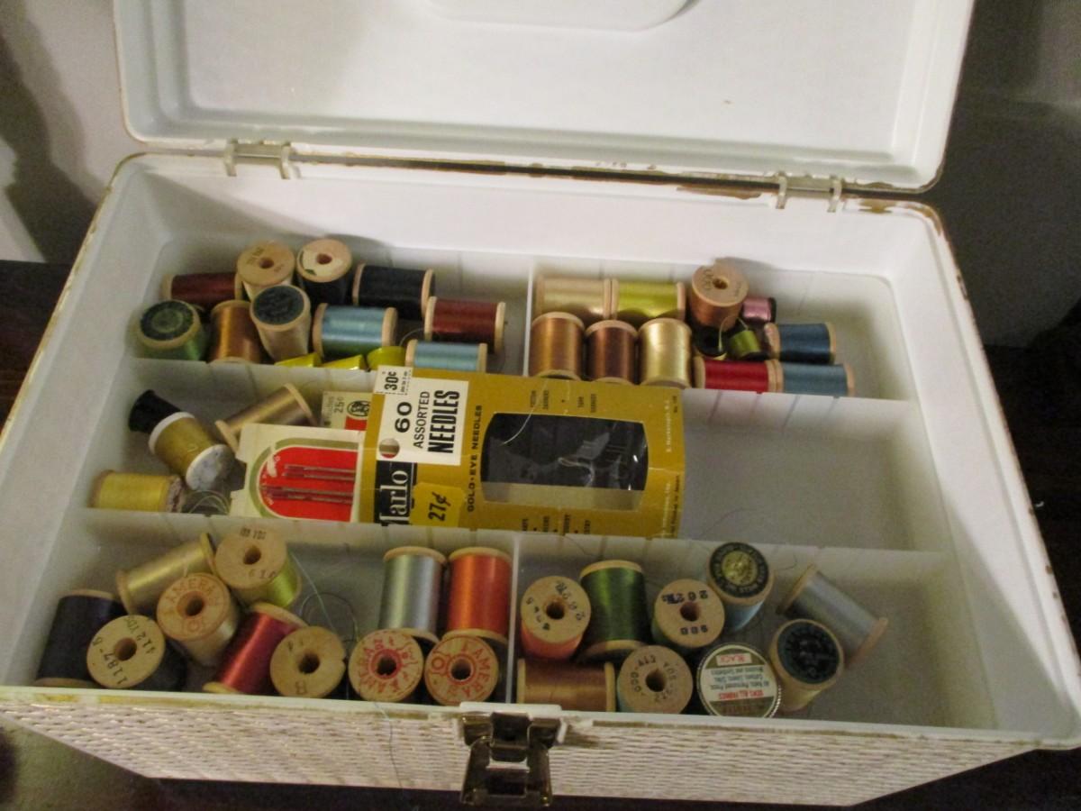 Vtg Wil-Hold Handled Sewing Box Faux Wicker White With Gold Wilson-MFG. Corp & Thread