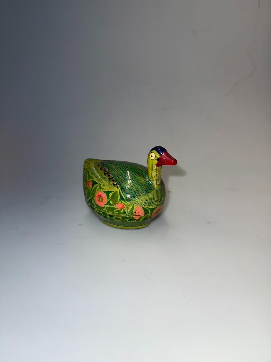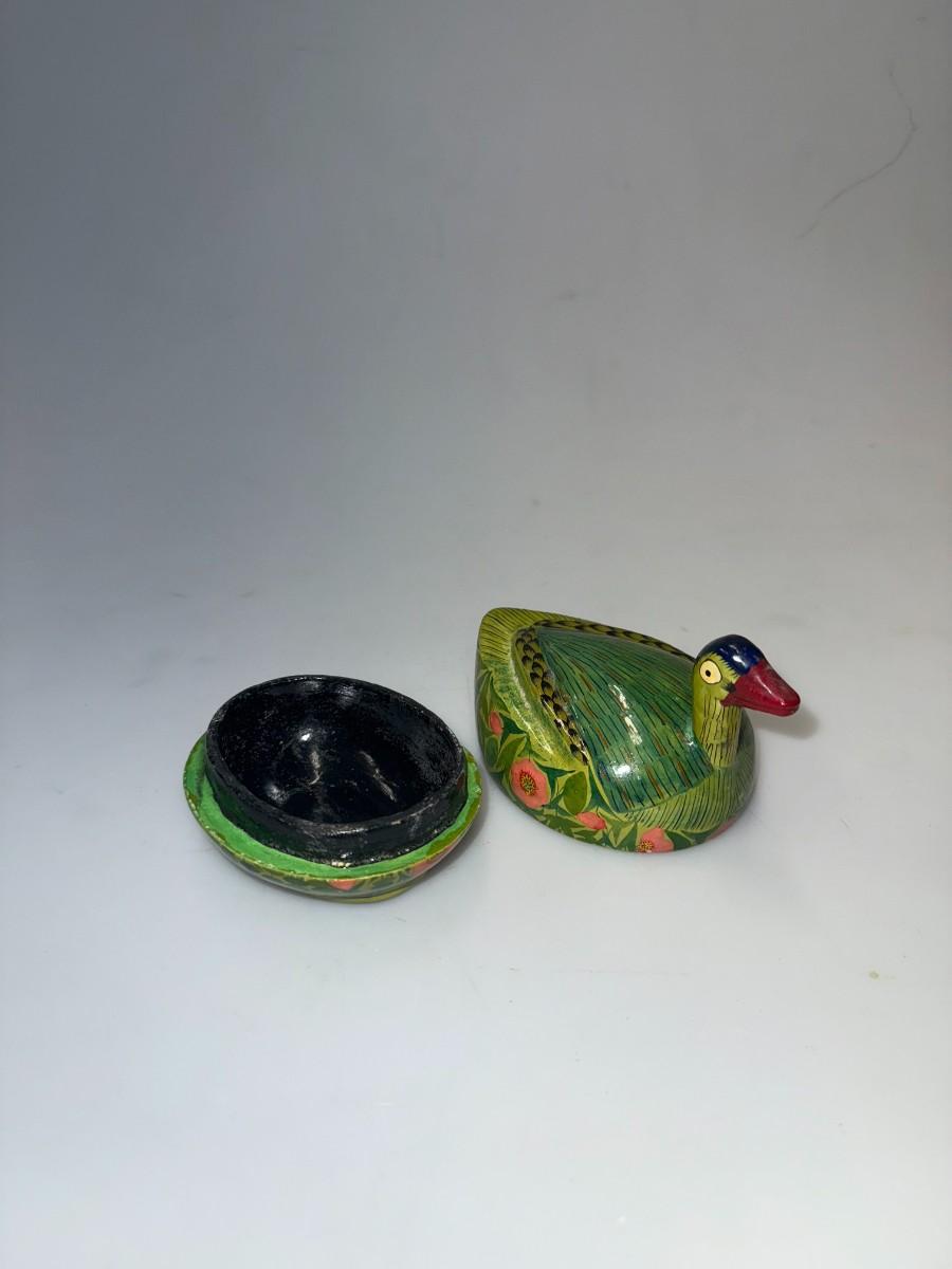 VTG Wooden Decorative Painted Duck 2 Part Trinket Box Handmade in Kashmir India