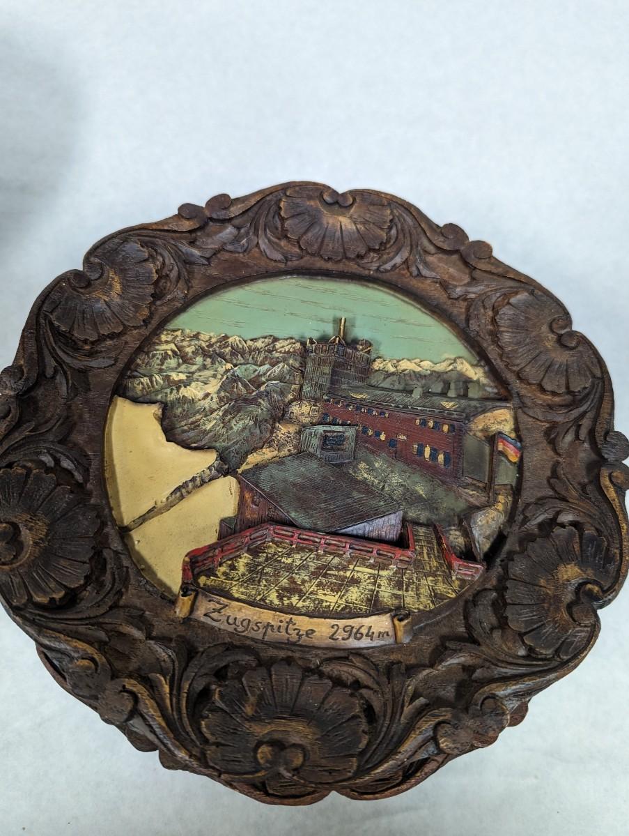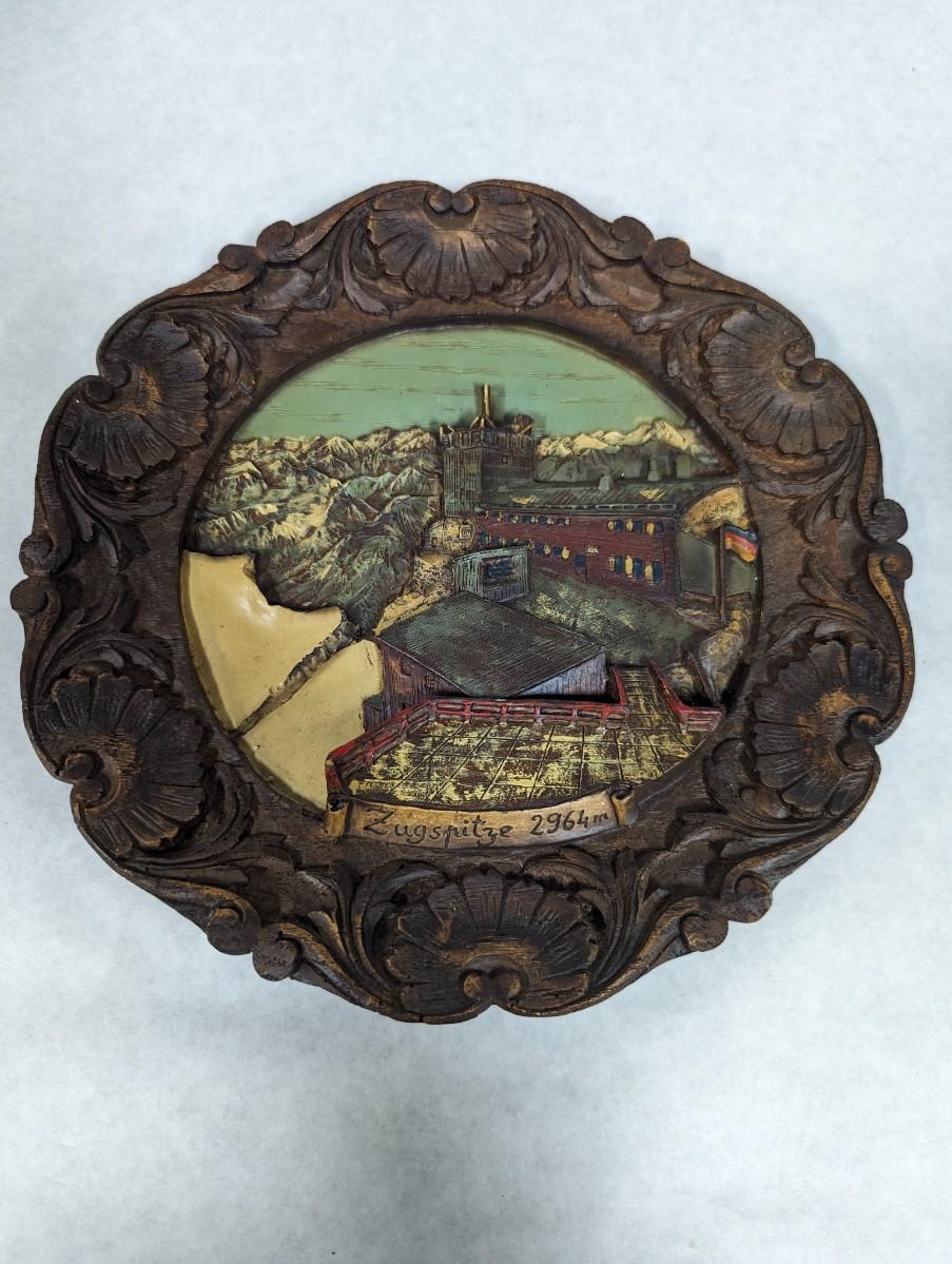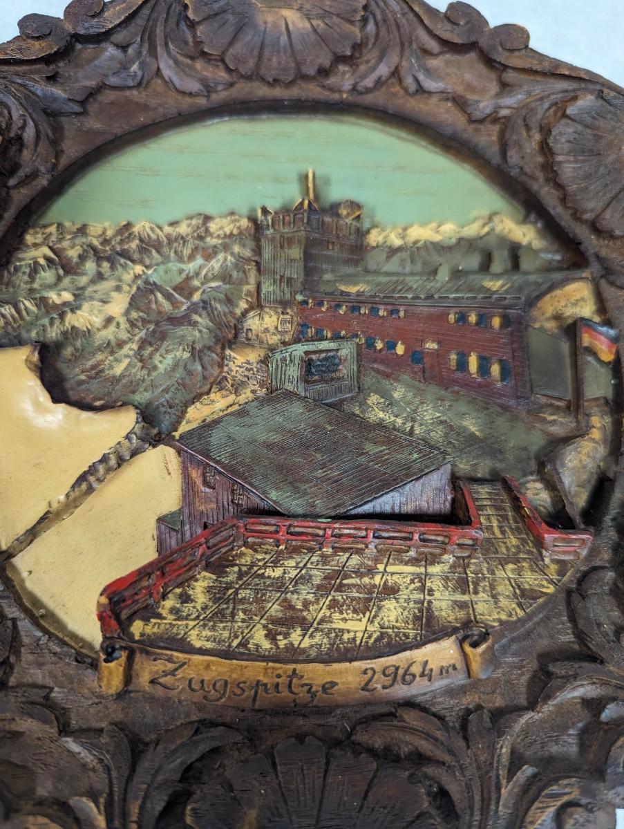 Vtg Zugspitze 2964m Germany 3-D Souvenir Plate Handpainted Pressed Wood