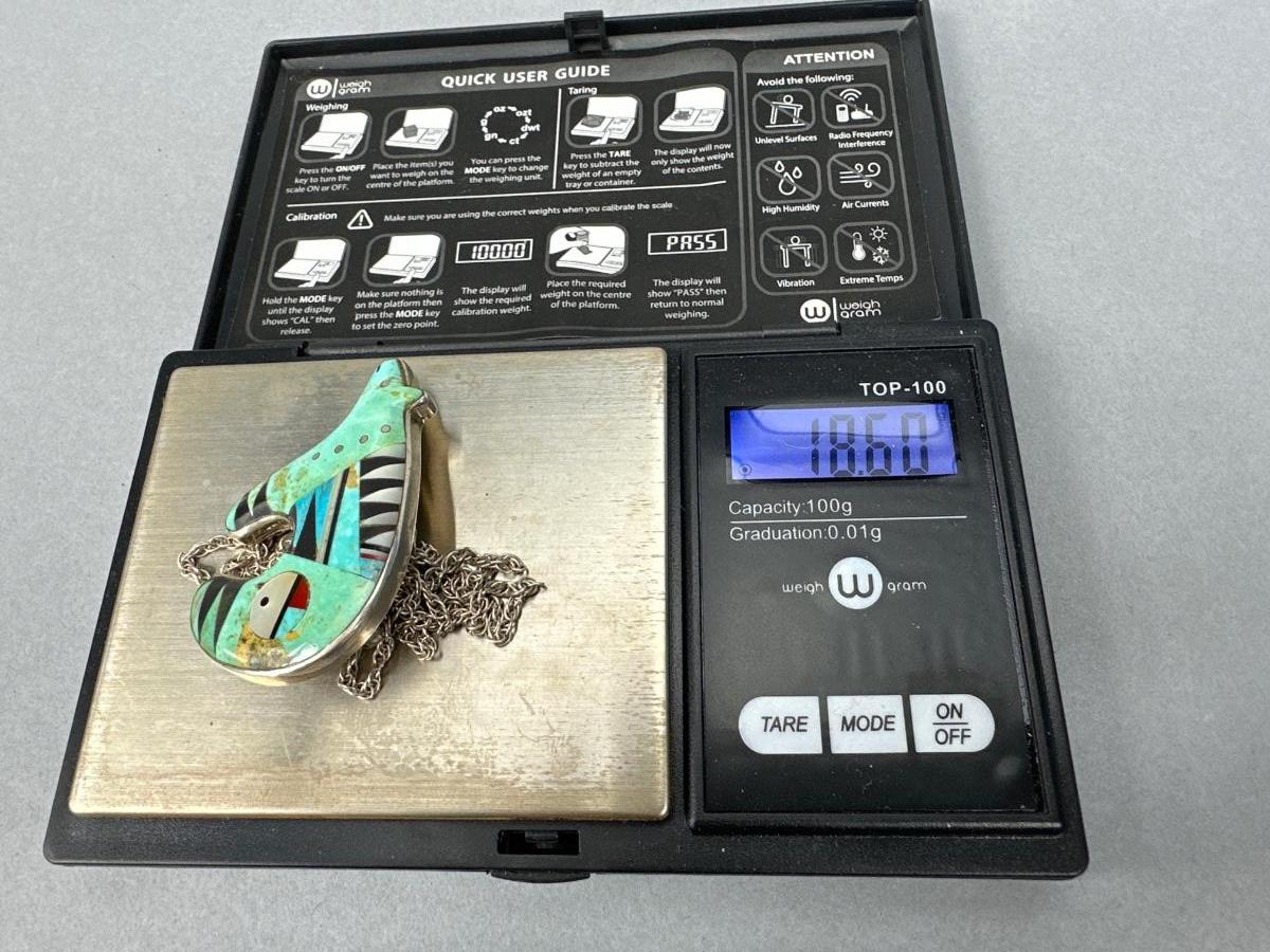 Vtg Zuni Multi Inlaid Stone Sterling Bear Fetish Pendant