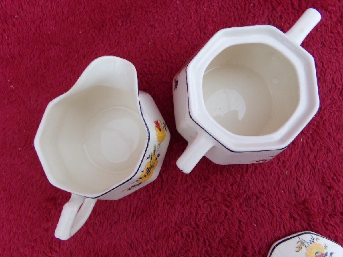 VTG/Antique Homer Laughlin cream & sugar set. Pattern & exact vintage unknown. Fair condition due to damage to sugar bowl lid.