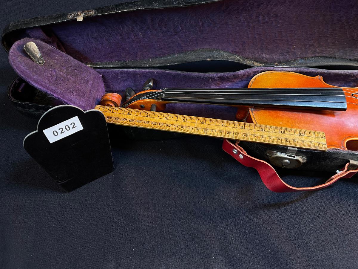 Violin: 22.25 x 7.5 inches. Case: 28 x 8.5