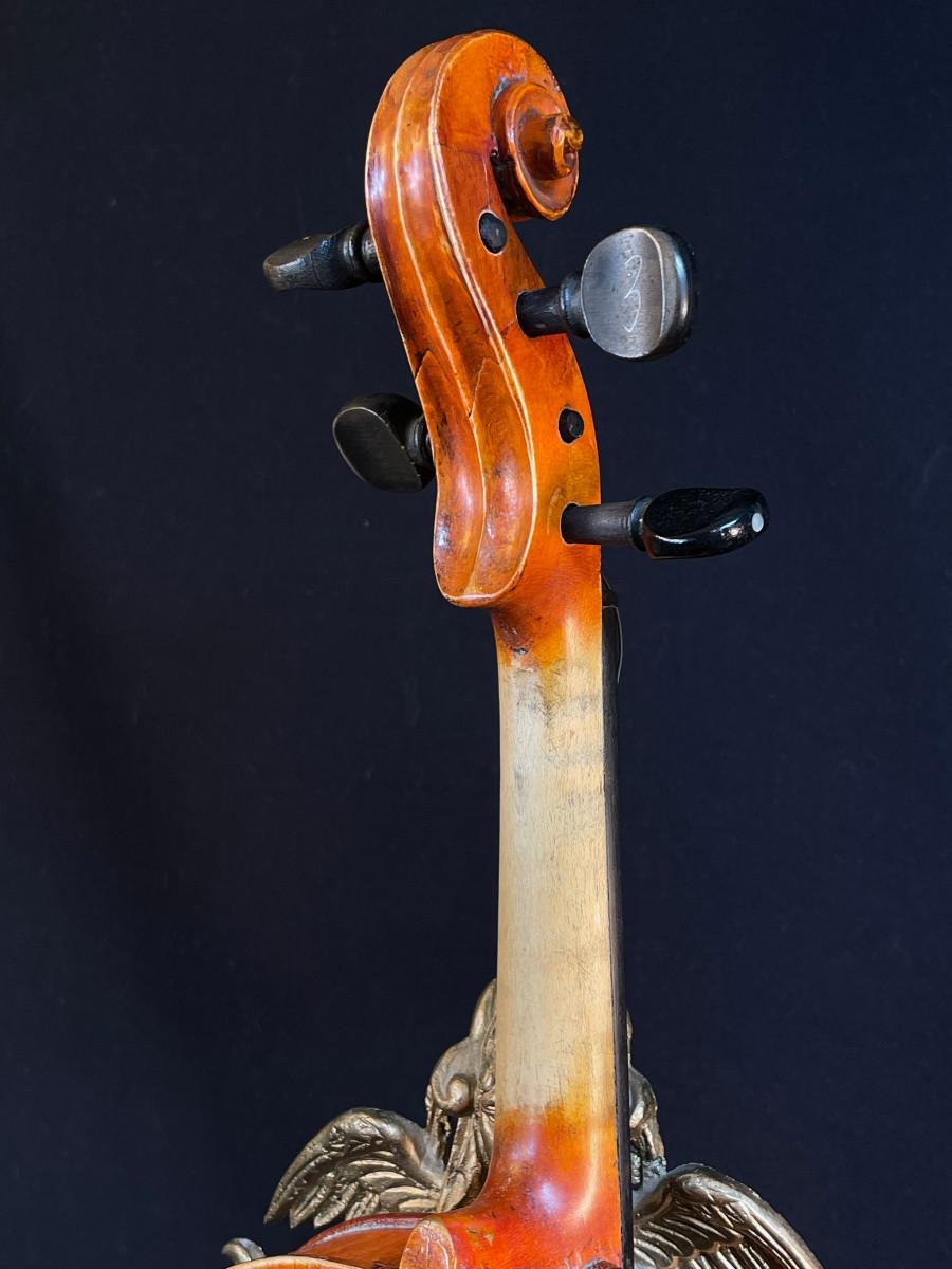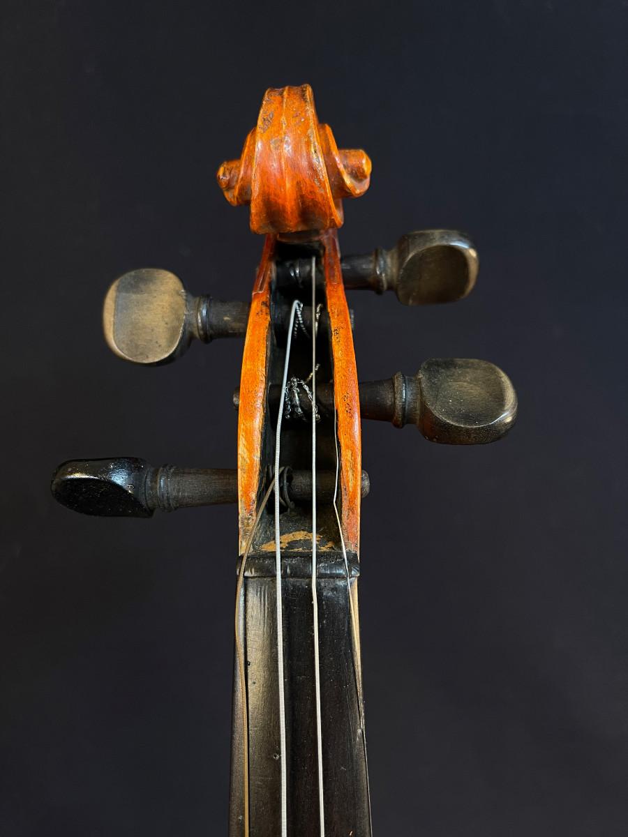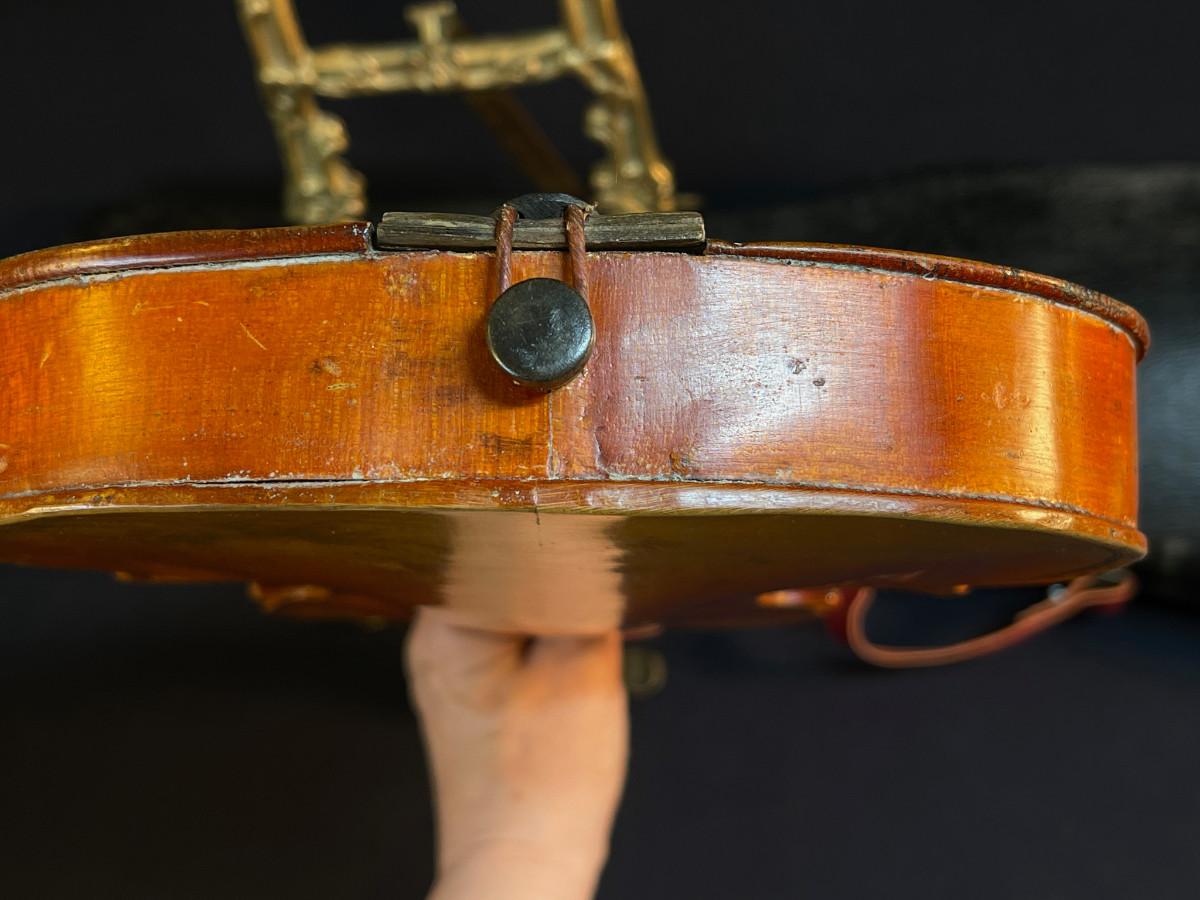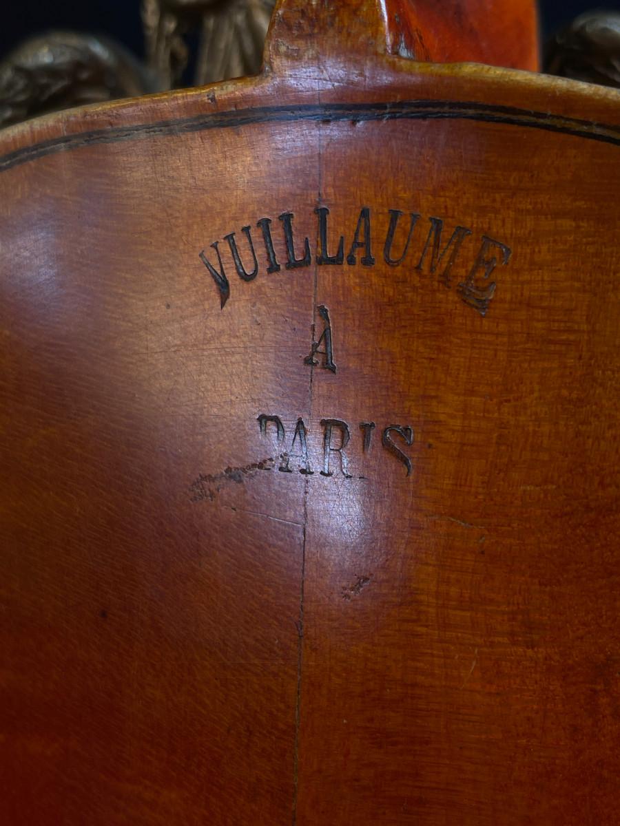 The subject item is an antique student/starter violin designed to be an introduction to playing for a young student. Less expensively produced by the Vuillaume A. Paris. An inside lable reads in part, “Ru Croix Des Petits Champ 10“🦆.. The violin retains the original fitted case. Both need some professional attention, though the body of the violin appears to be intact, with no cracks.