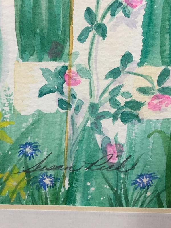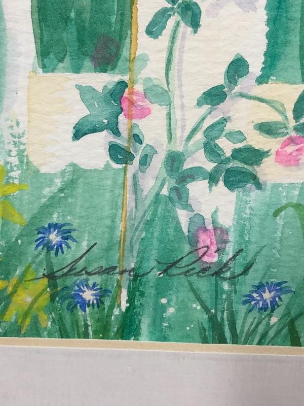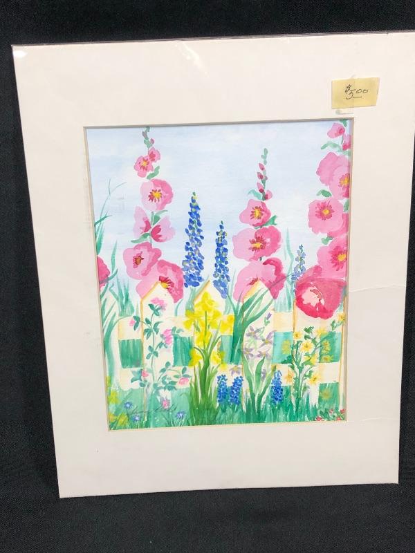 Unframed springtime watercolor painting. Colorful flowers. Signed in the corner.
