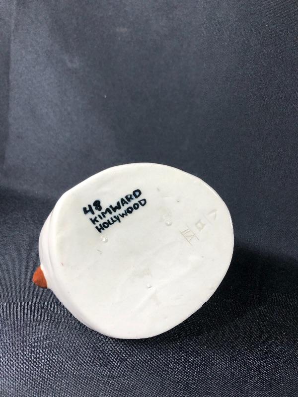 Vintage Kim Ward Hollywood mid century pottery woman. Lady in dusty rose pink, arms extended to hold a candle. Good condition. 6" size.