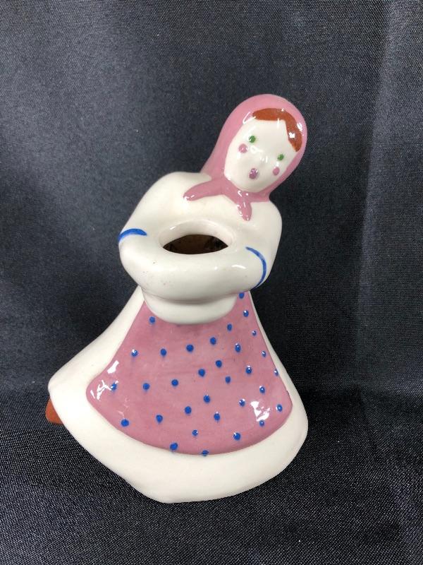 Vintage Kim Ward Hollywood Woman Lady in Pink Candle Holder