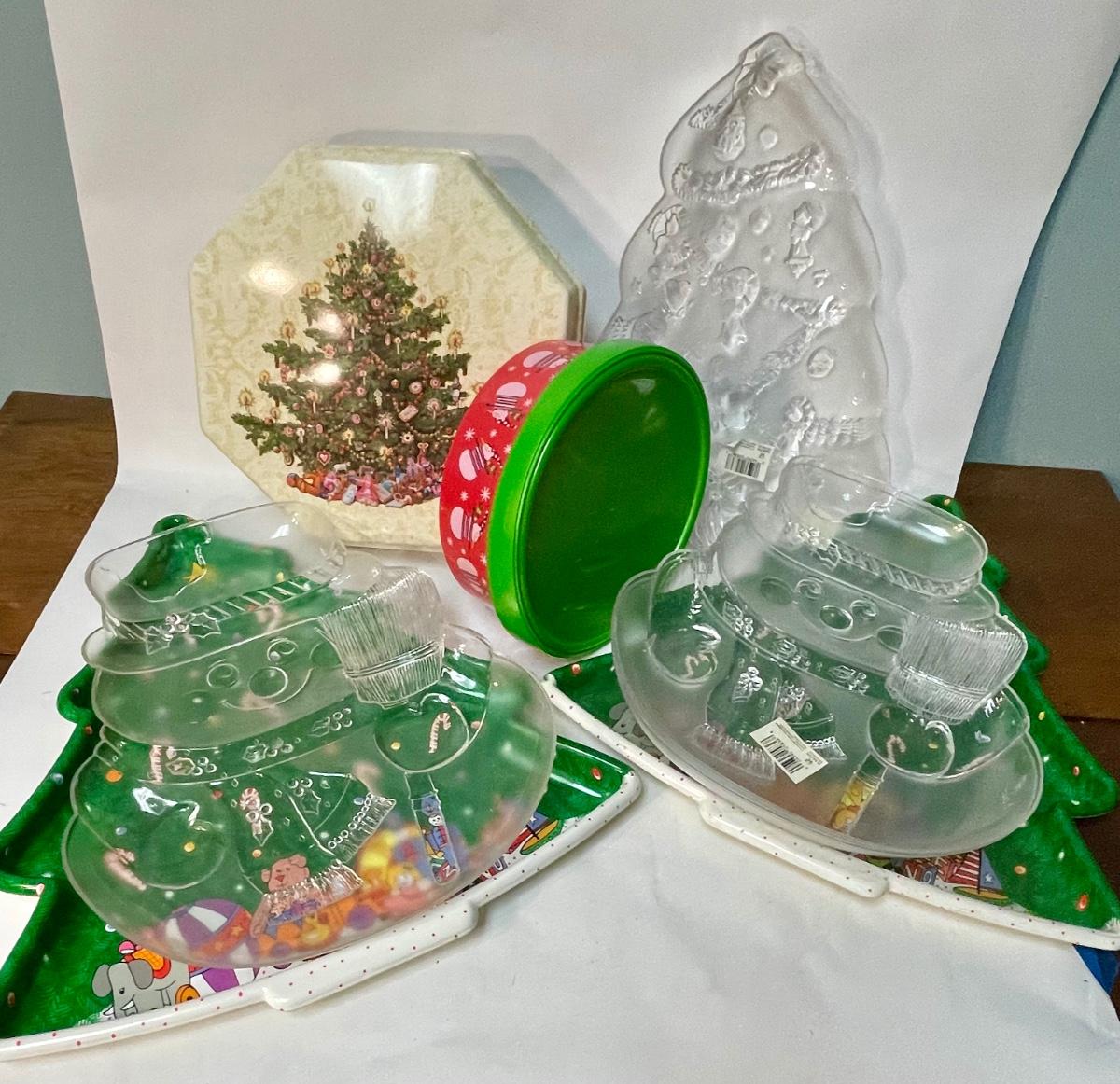 Holiday Plastic Serving Pieces Lot - Trays and Boxes