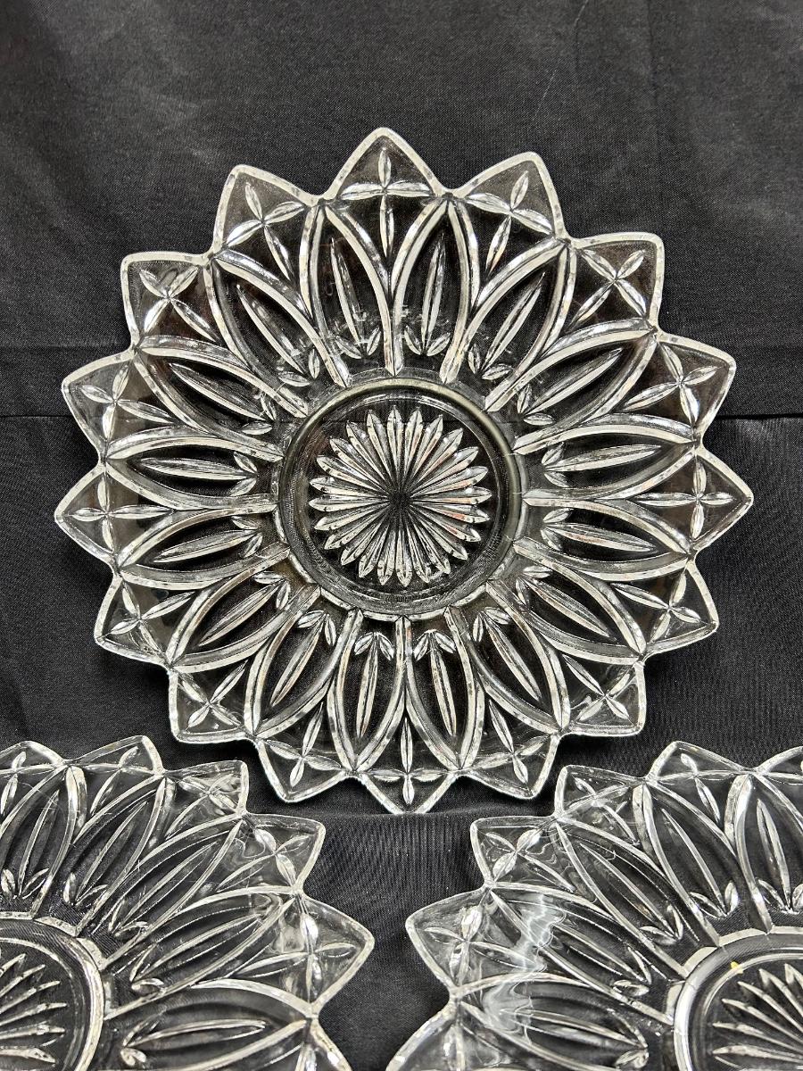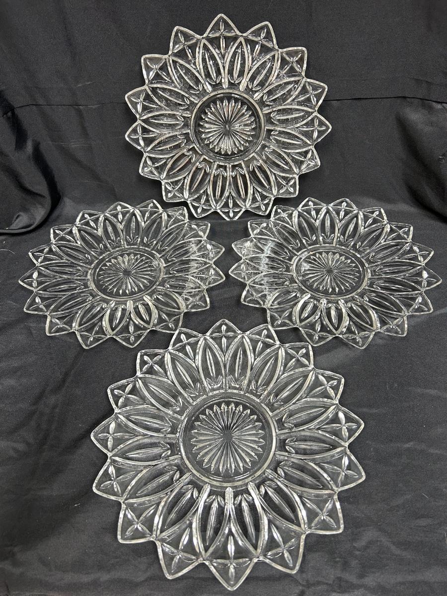 Set of Four Flower Shaped Federal Clear Glass Petal Serving Dishes. Lot A. In good condition, no chips. 12" size.