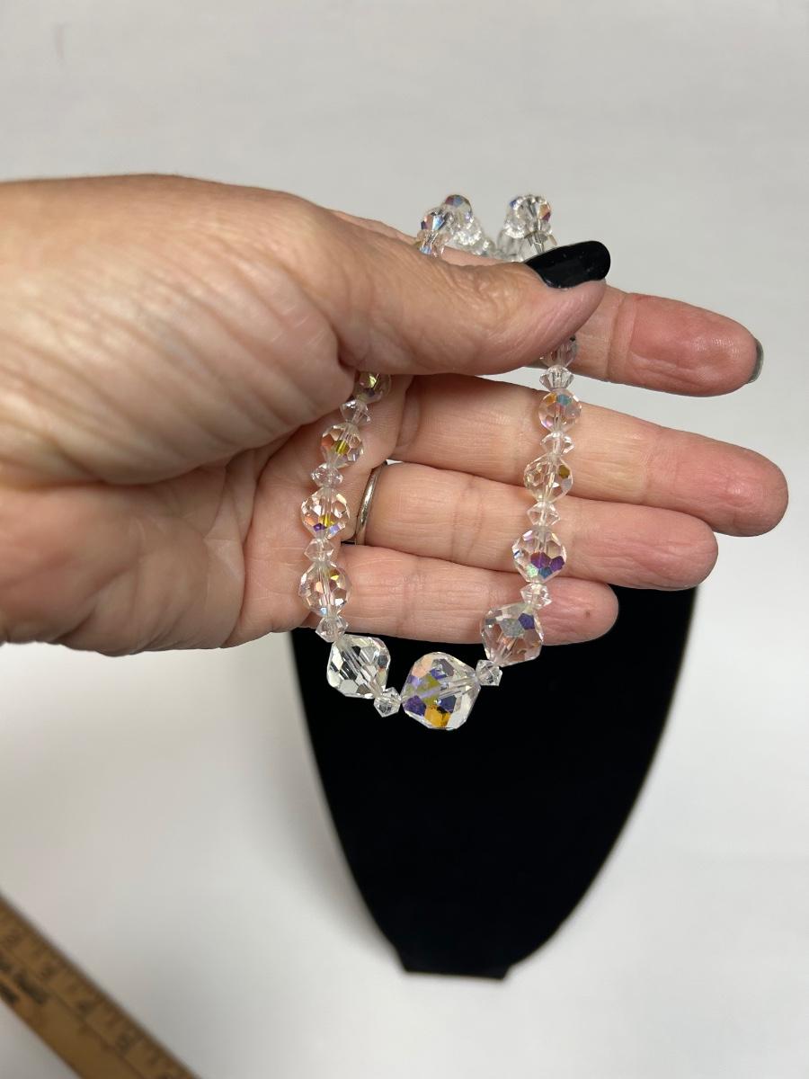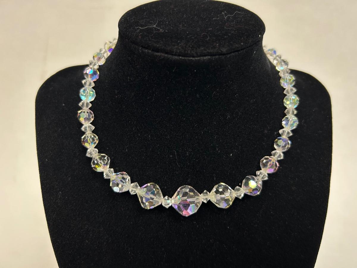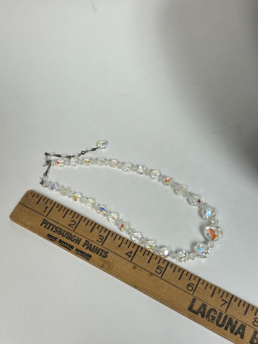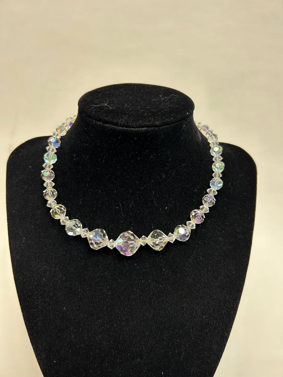Vintage AB Iridescent Faceted Glass Bead Choker Style Necklace