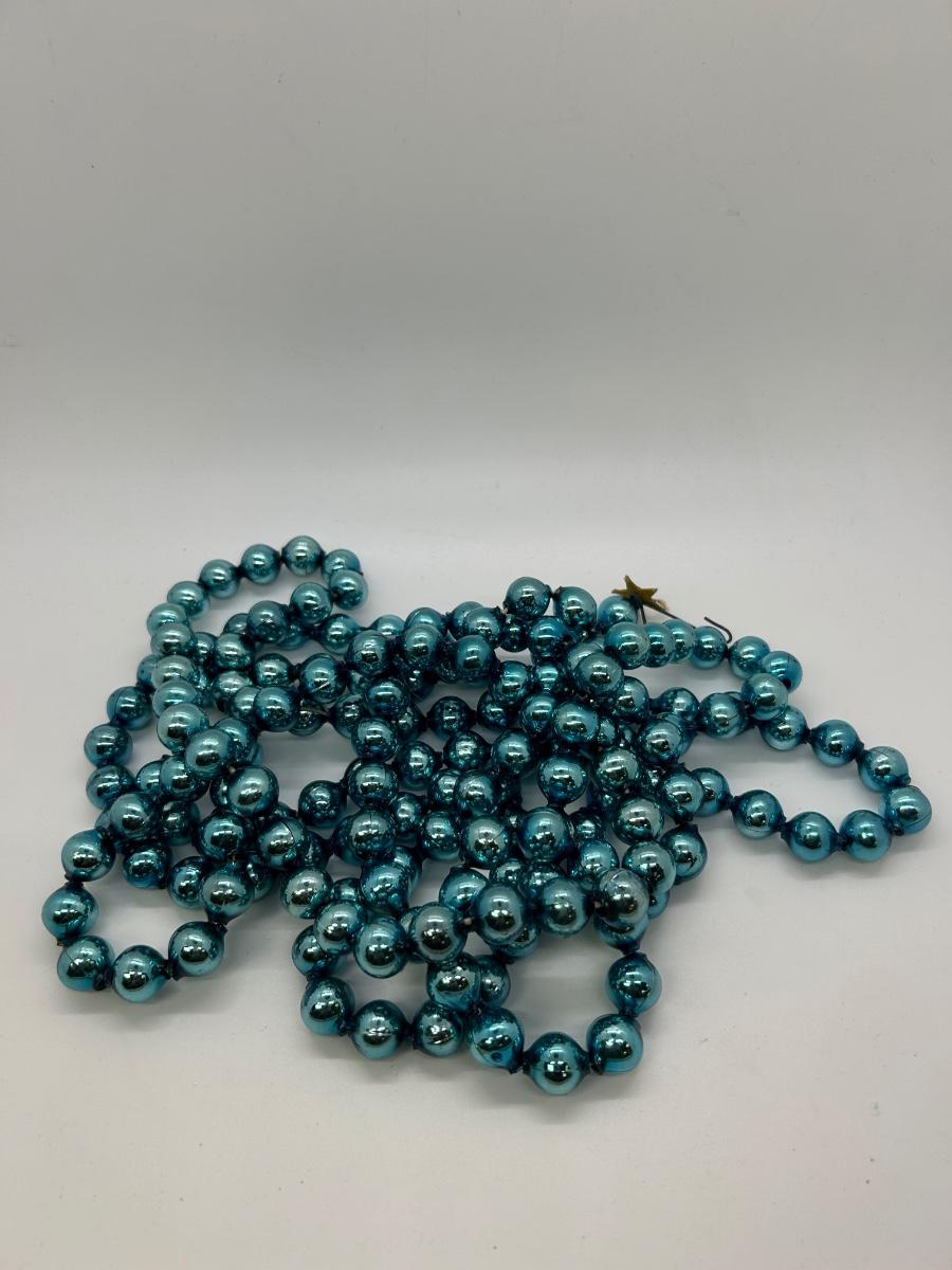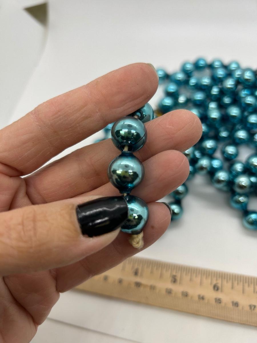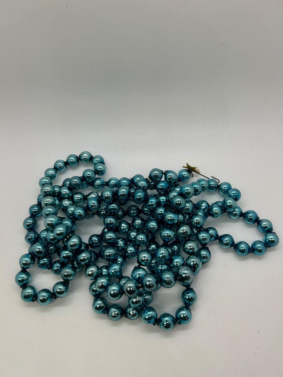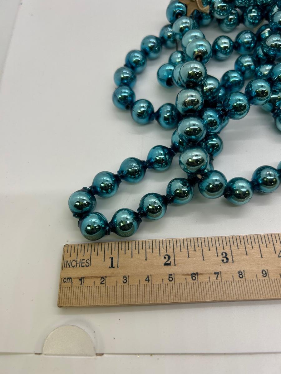 Vintage Turquoise Blue Blown Glass Beaded Garland Strand Christmas Holiday Craft. Blown glass beaded garland. About 1/2" size balls. Can be repurposed for crafts and decor. About 5' length.