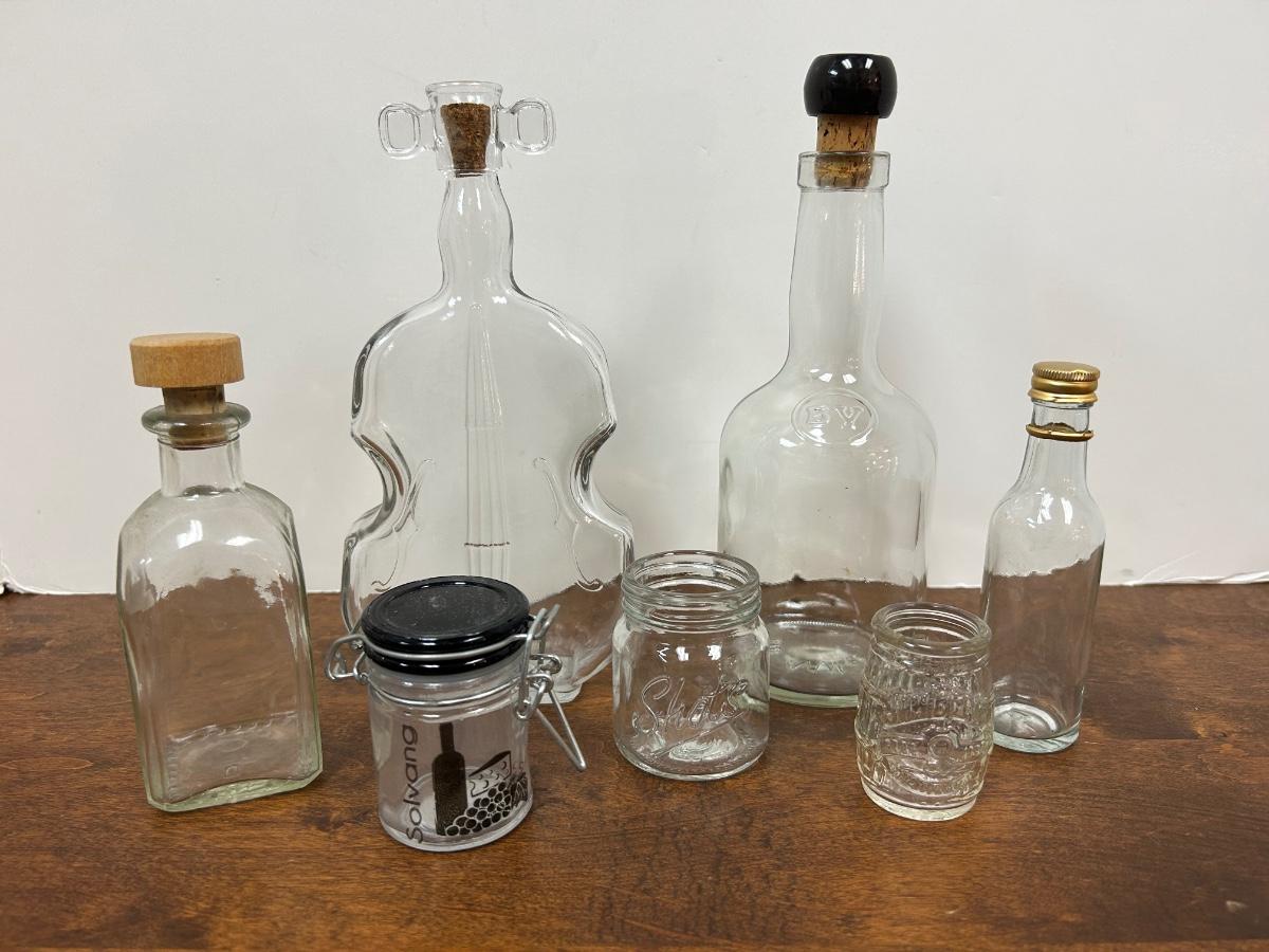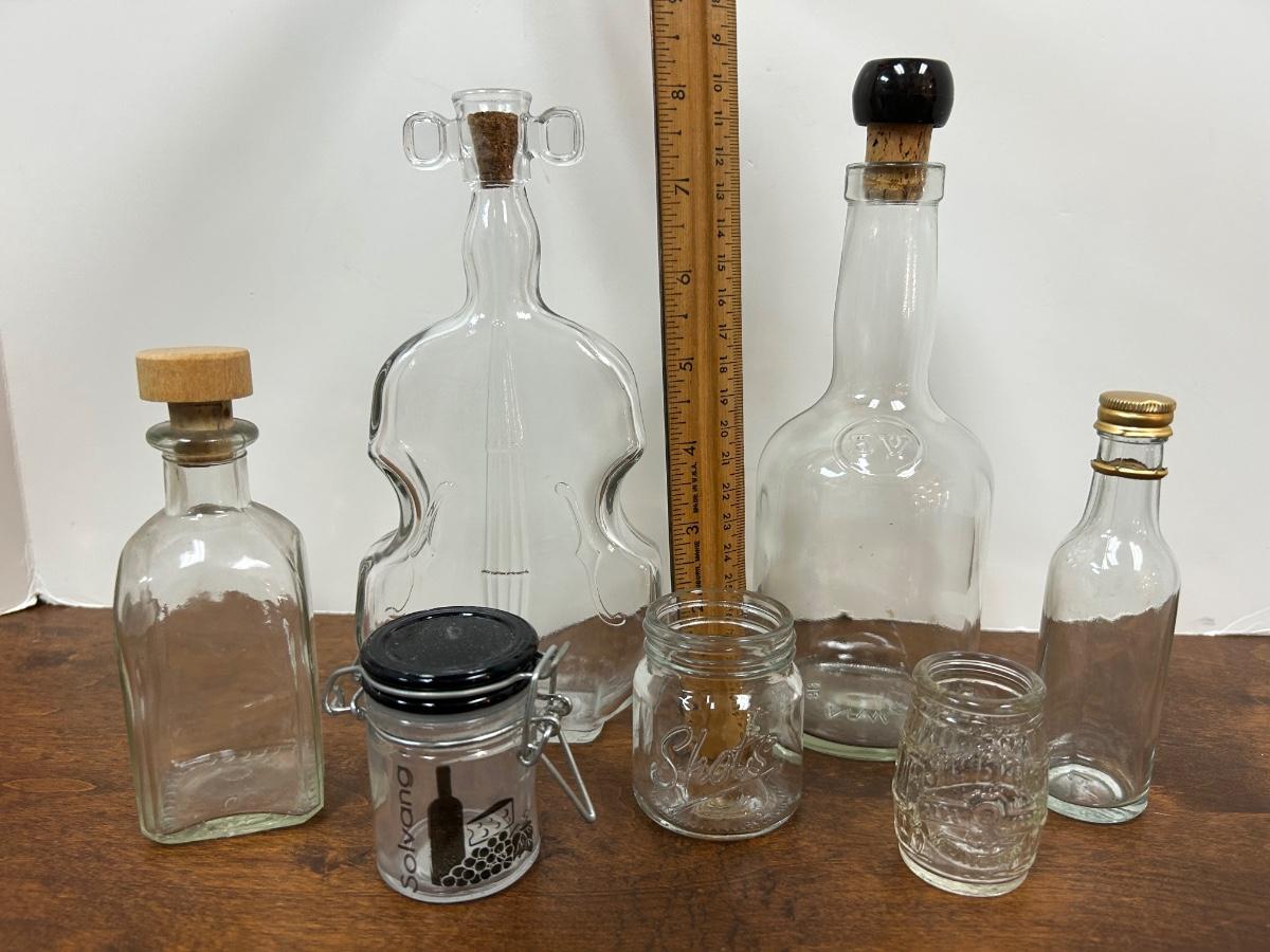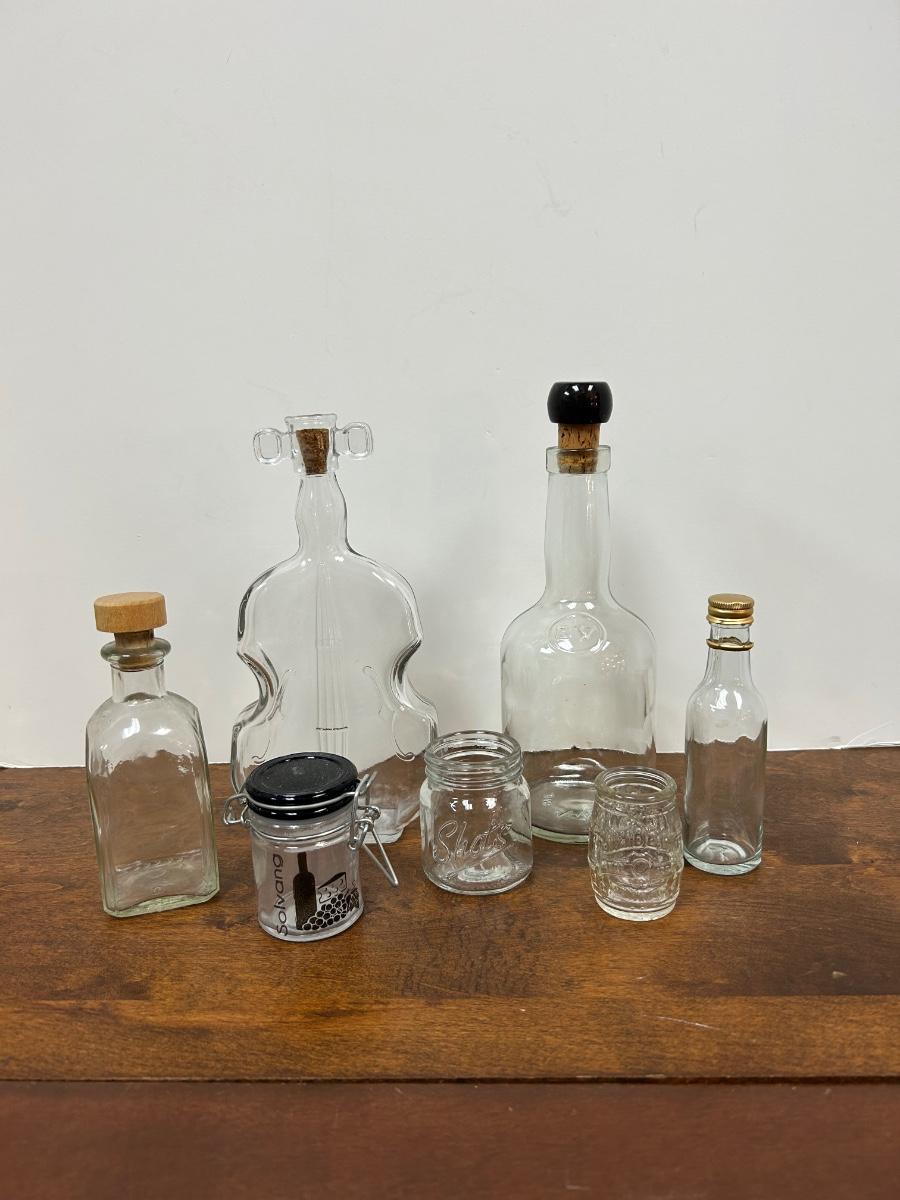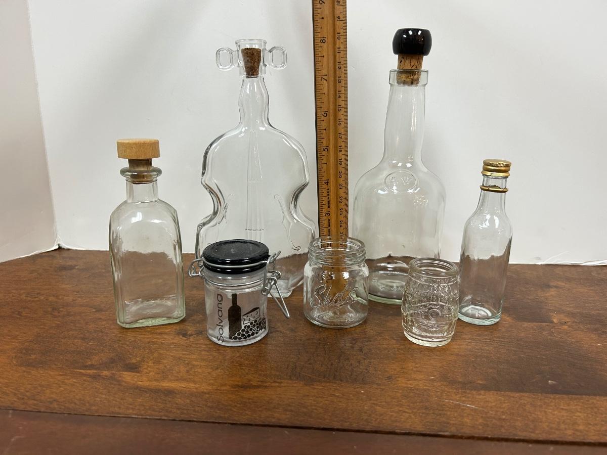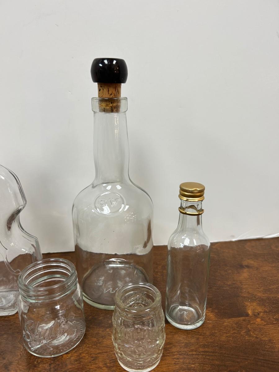 Mixed Lot of Clear Glass Bottles. Different sizes and shapes, great for display or crafting.