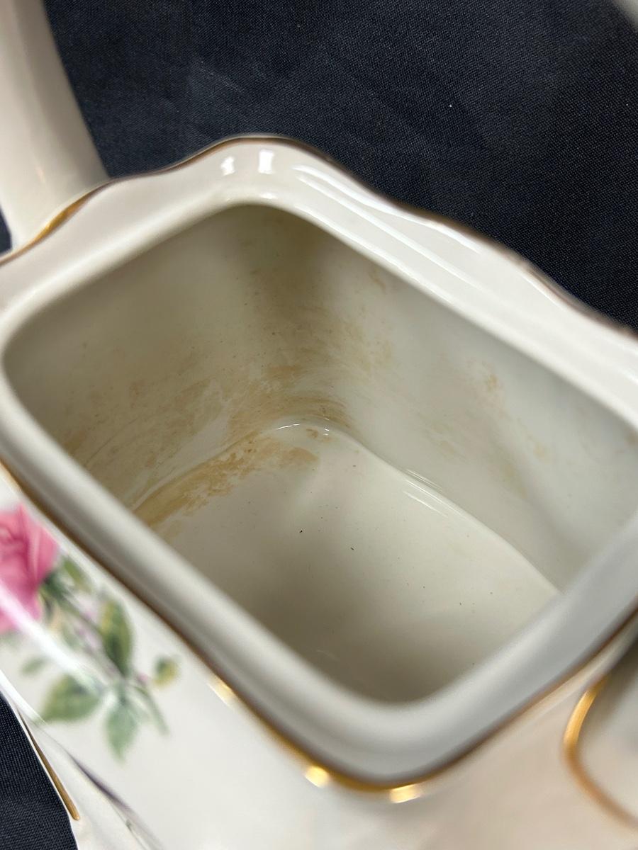 Vintage Crown Dorset Staffordshire Bone China England Floral Pink Red Roses Teapot. In vintage condition. There is discolor inside and crazing.