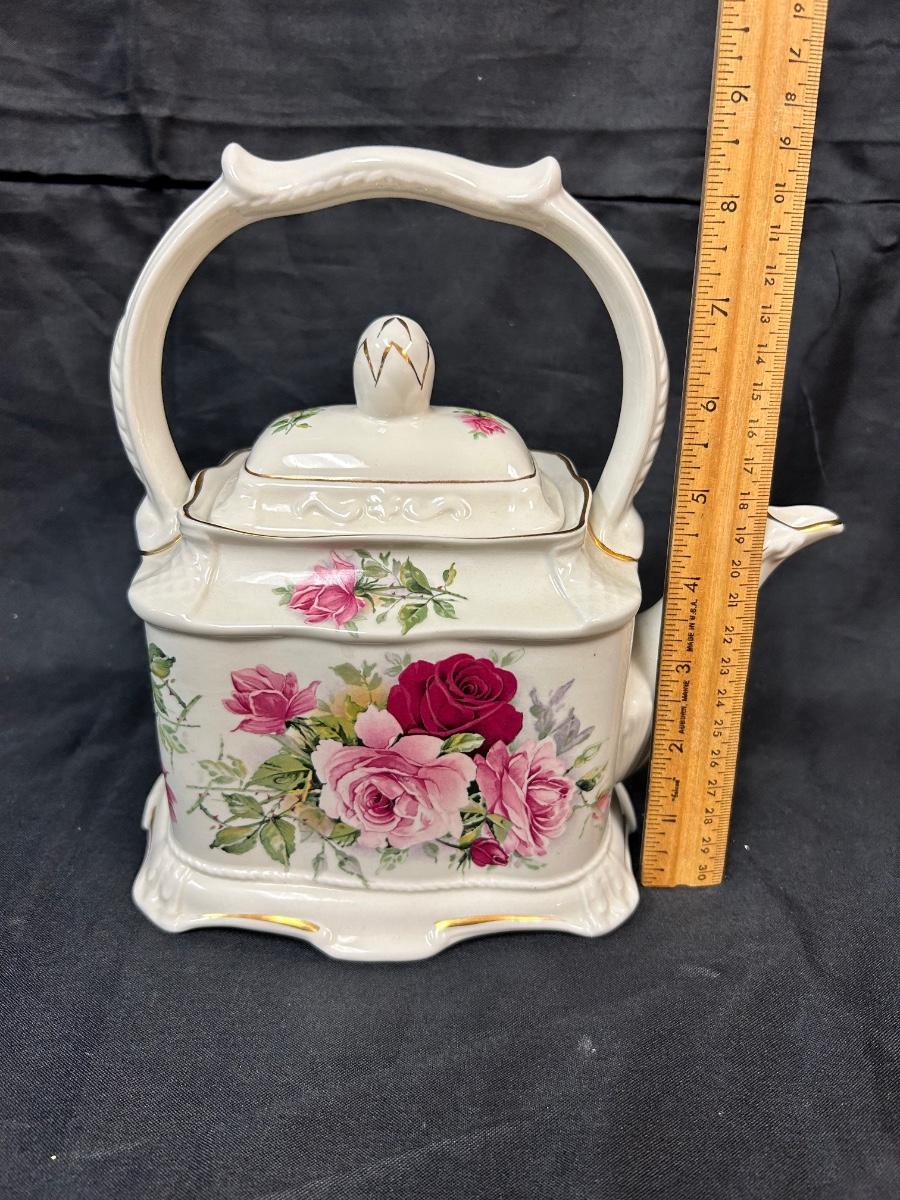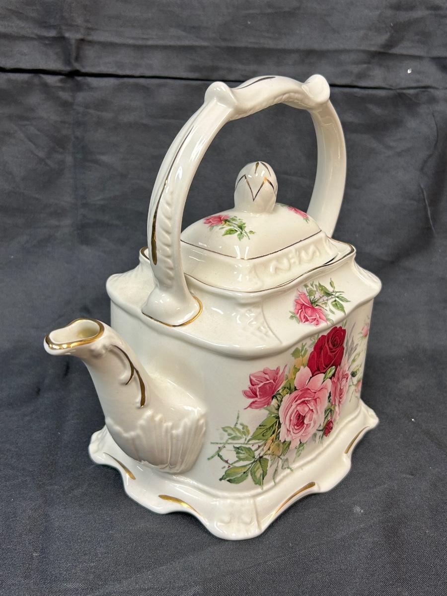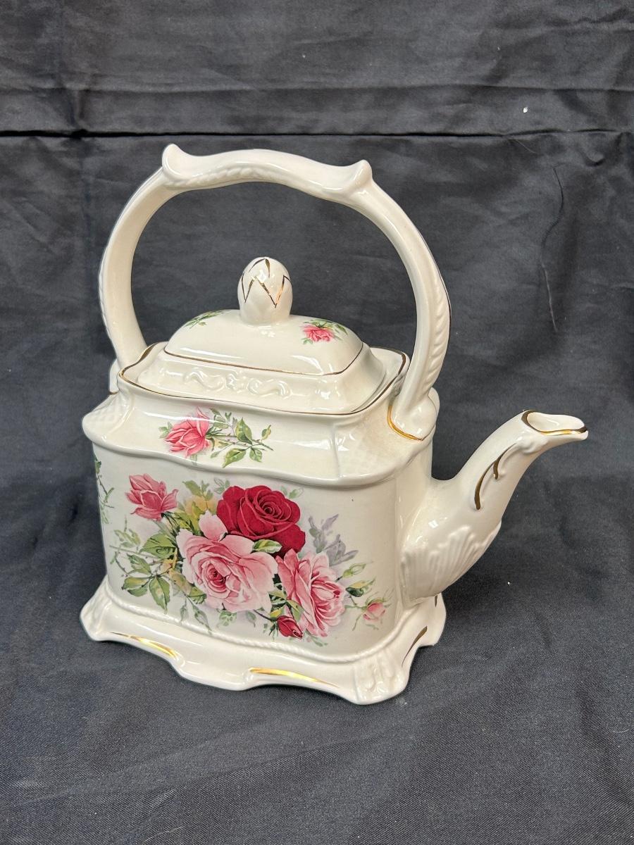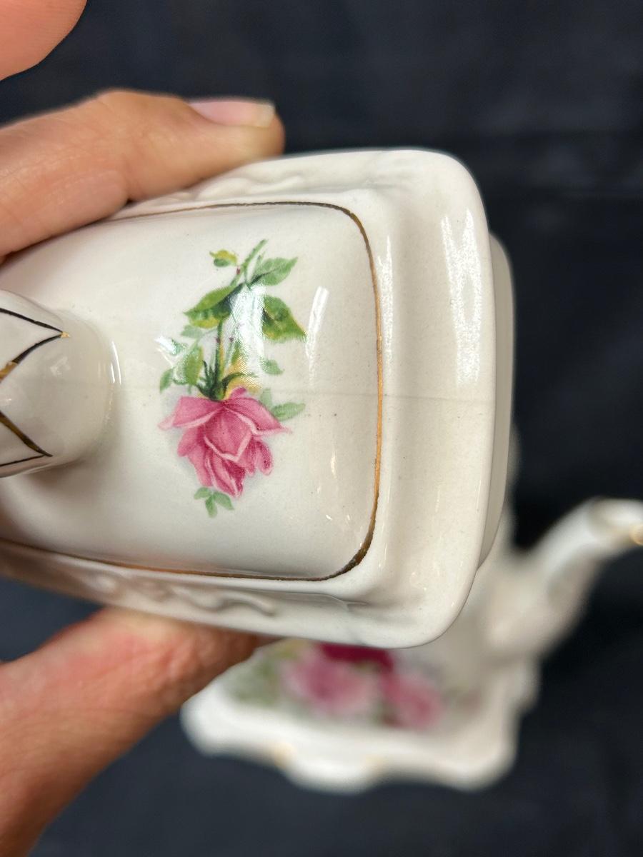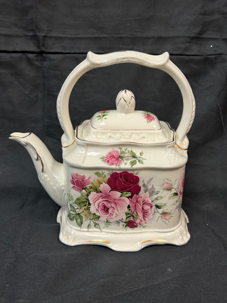 Vintage Crown Dorset Staffordshire Bone China England Floral Pink Red Roses Teapot