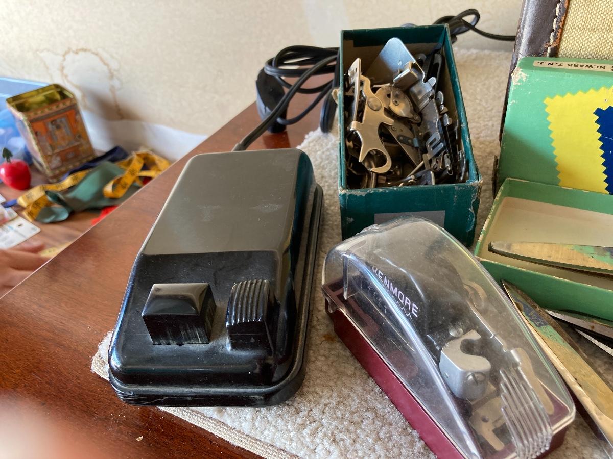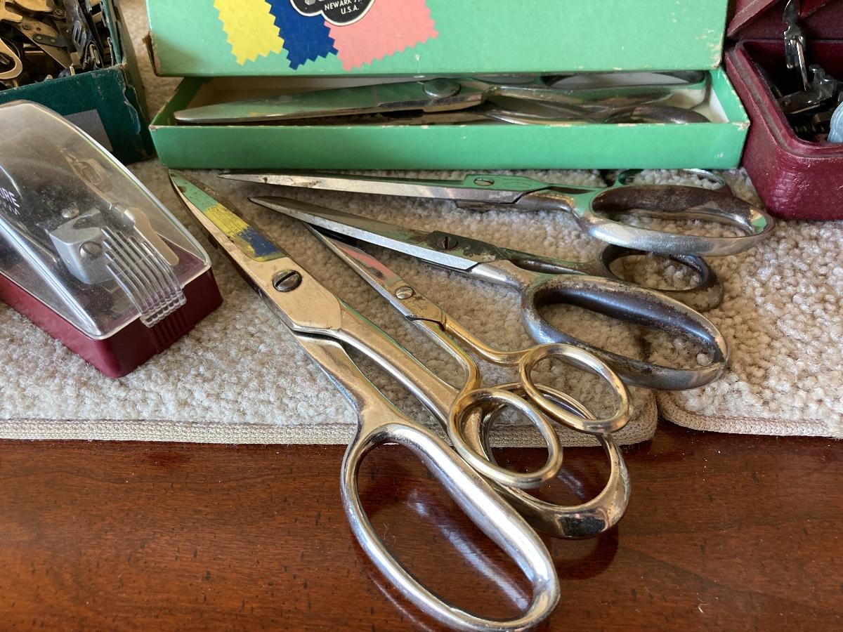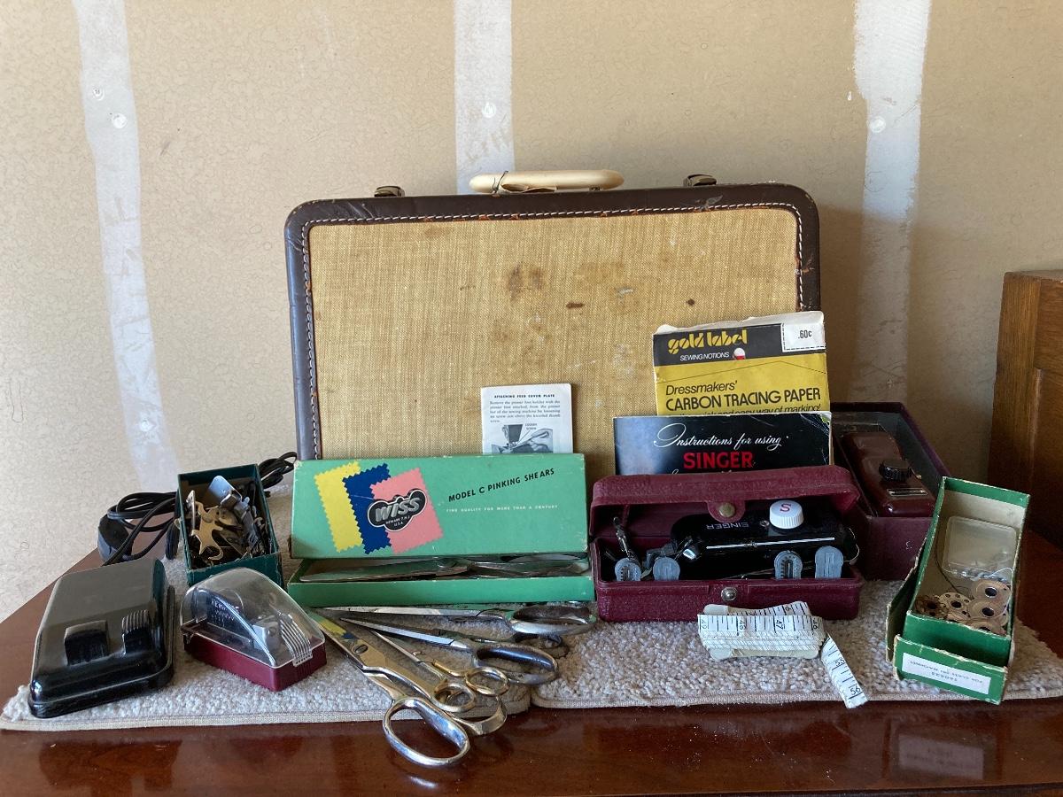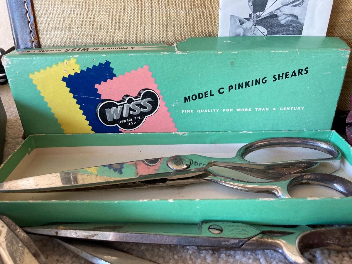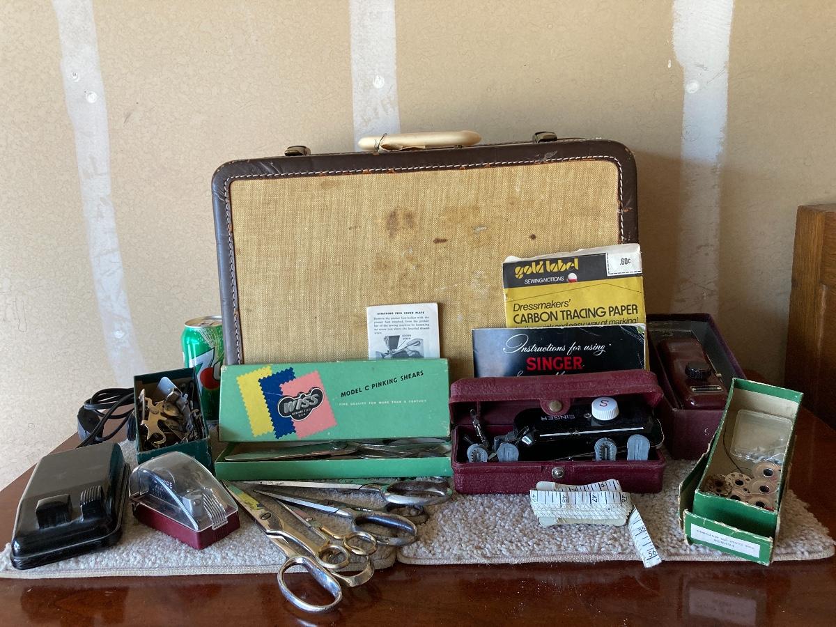 #440 Vintage SINGER Sewing Machine, Vintage Scissors, Vintage WISS Pinking Shears, Etc