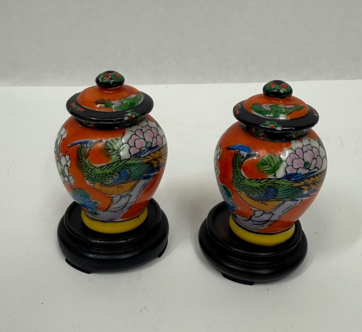 2 Small Miniature Vintage Gold Castle Ginger Jars made in Japan