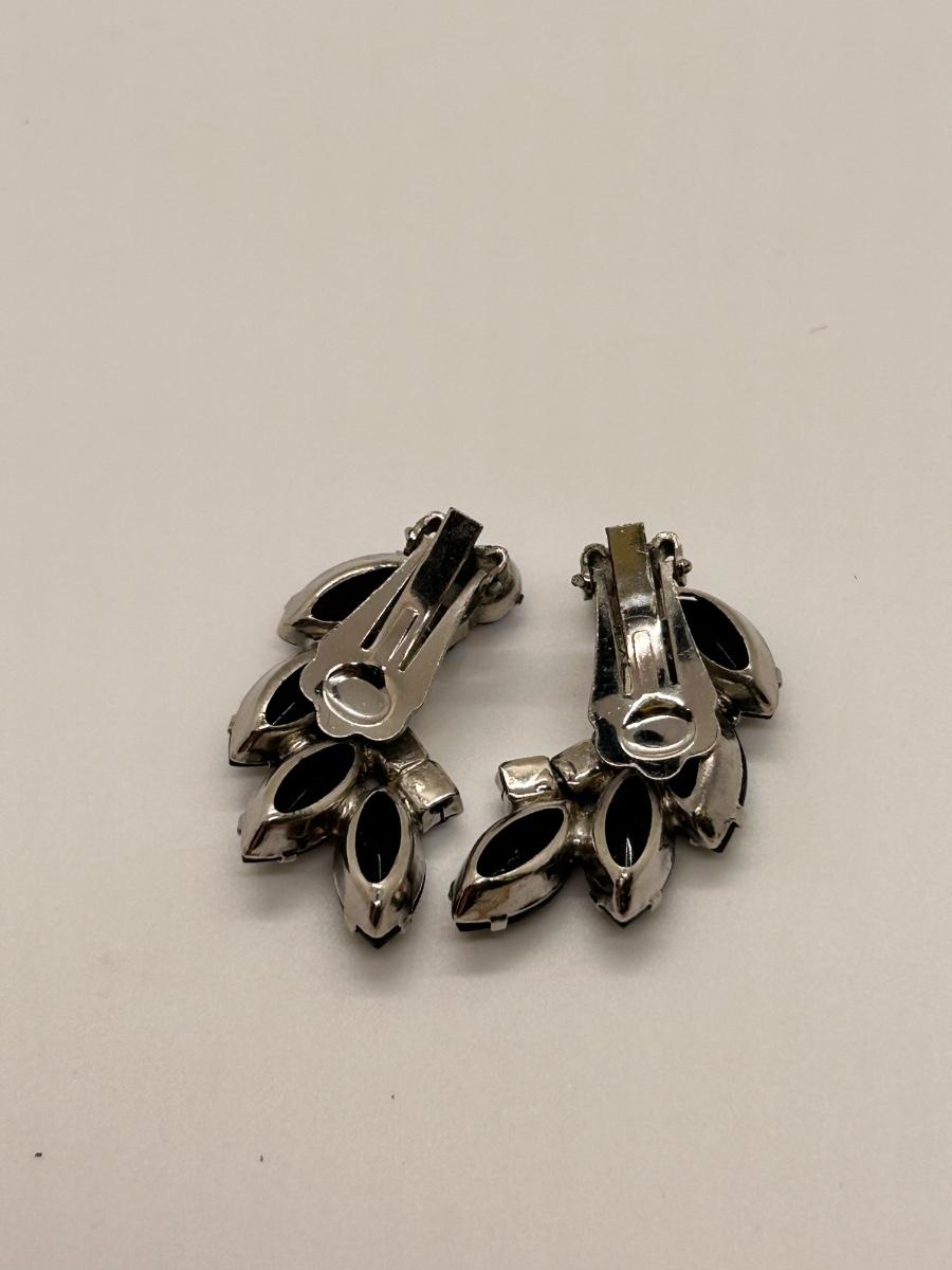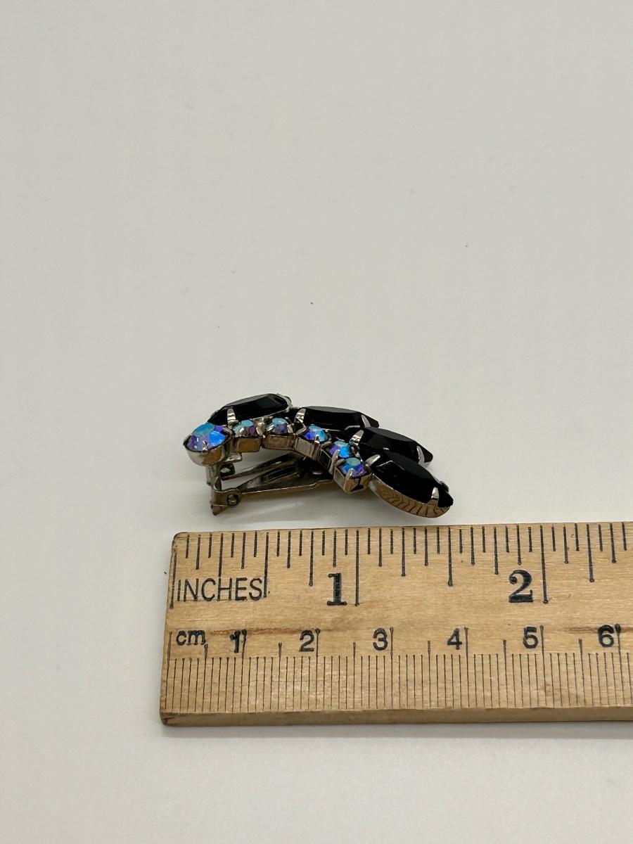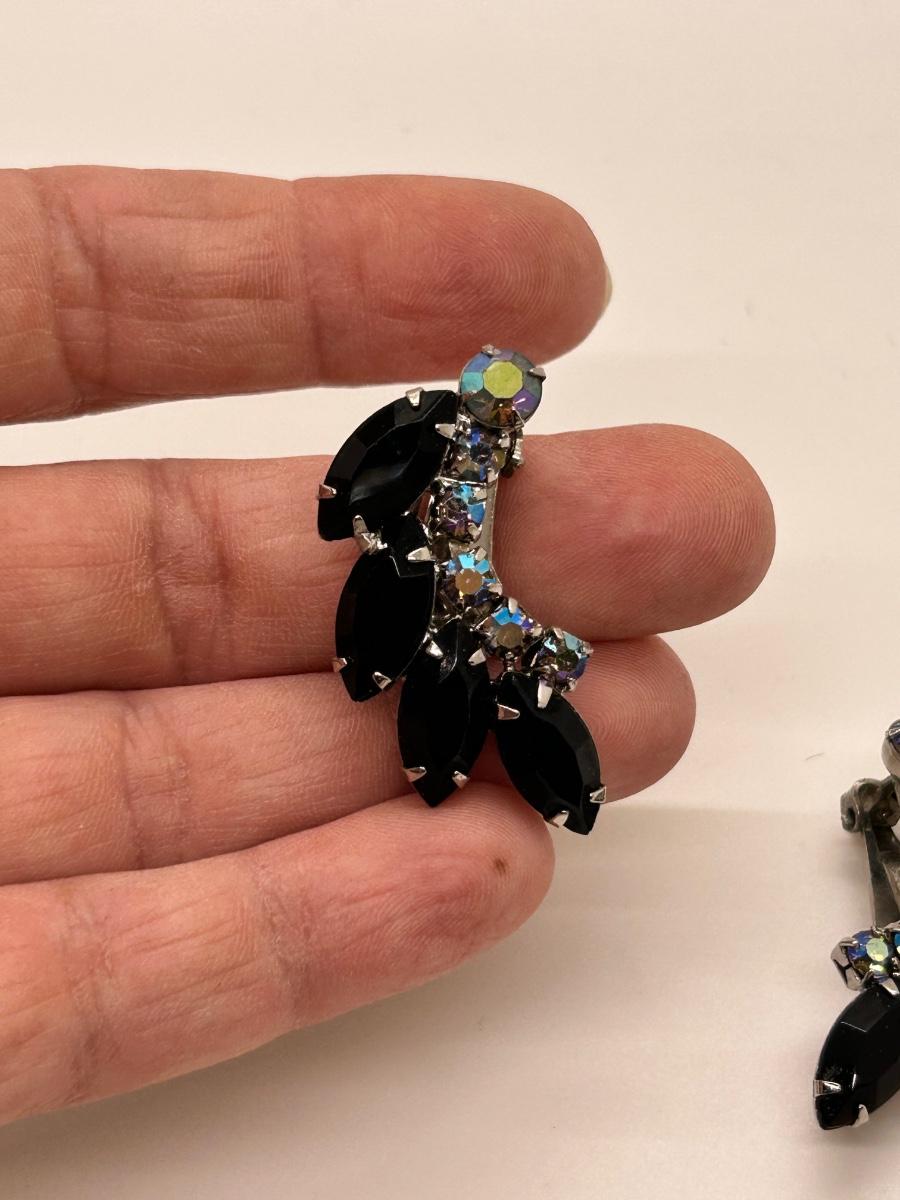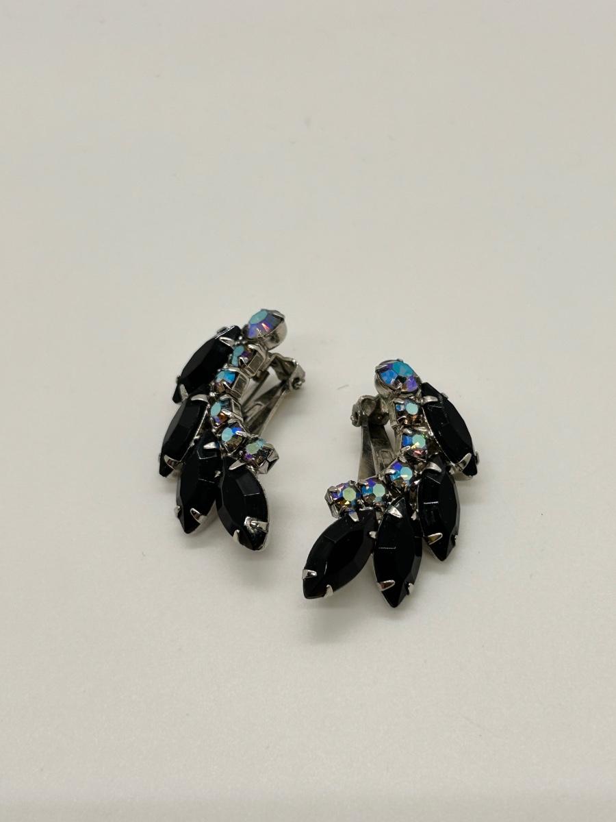 Vintage Black & AB Black Clip Style Rhinestone Earrings