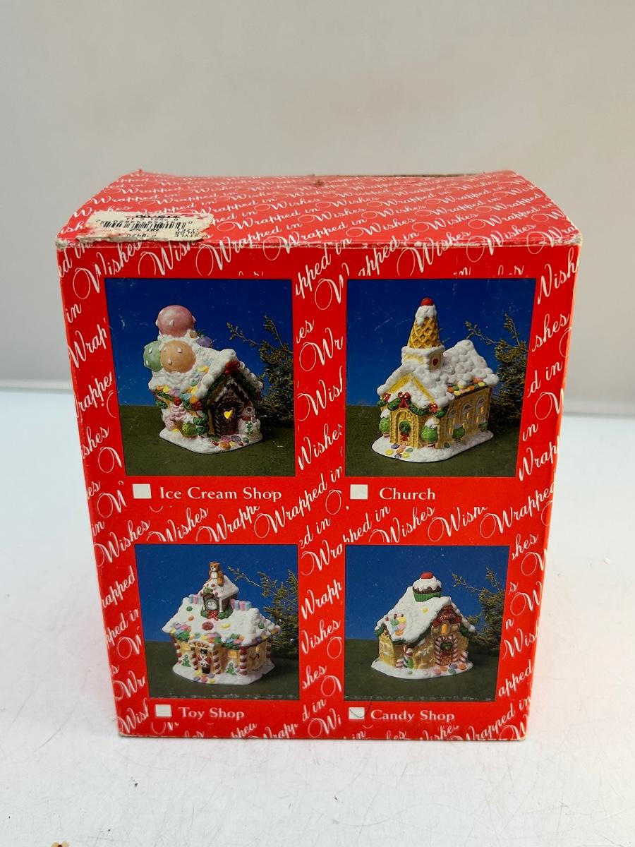 Porcelain Christmas Holiday Gingerbread House Votive Candle Holder with Box